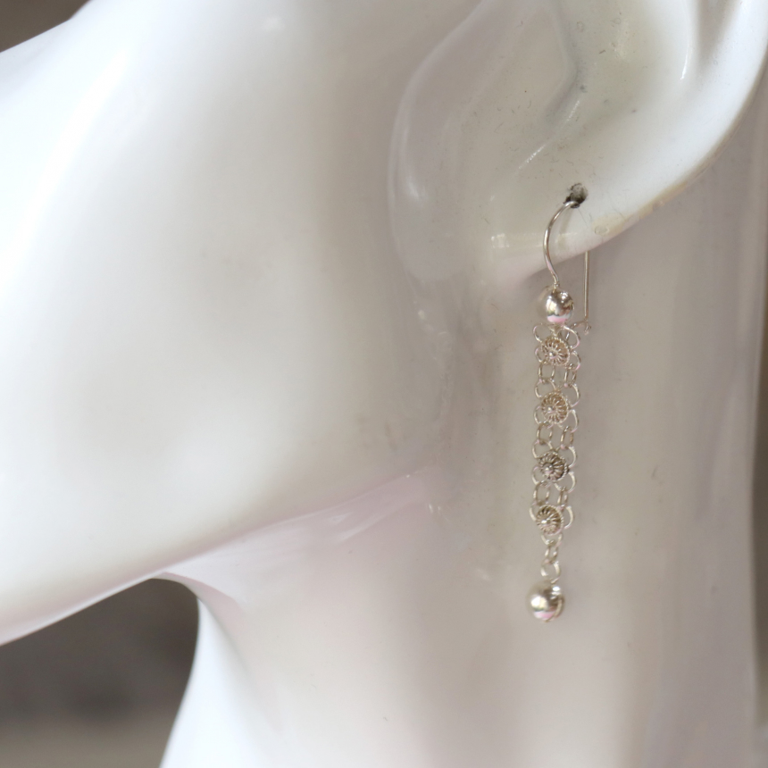 繊細で緻密なシルバー装飾。トルコ南部、シリアとの国境に近いマルディン地方の伝統工芸品で、今でも昔ながらの手づくりでひとつひとつ作られています。ピアスのワイヤーは現地仕様なので少し太めです。