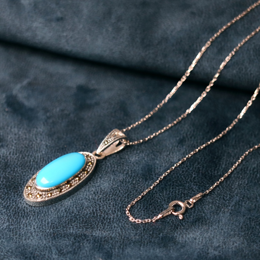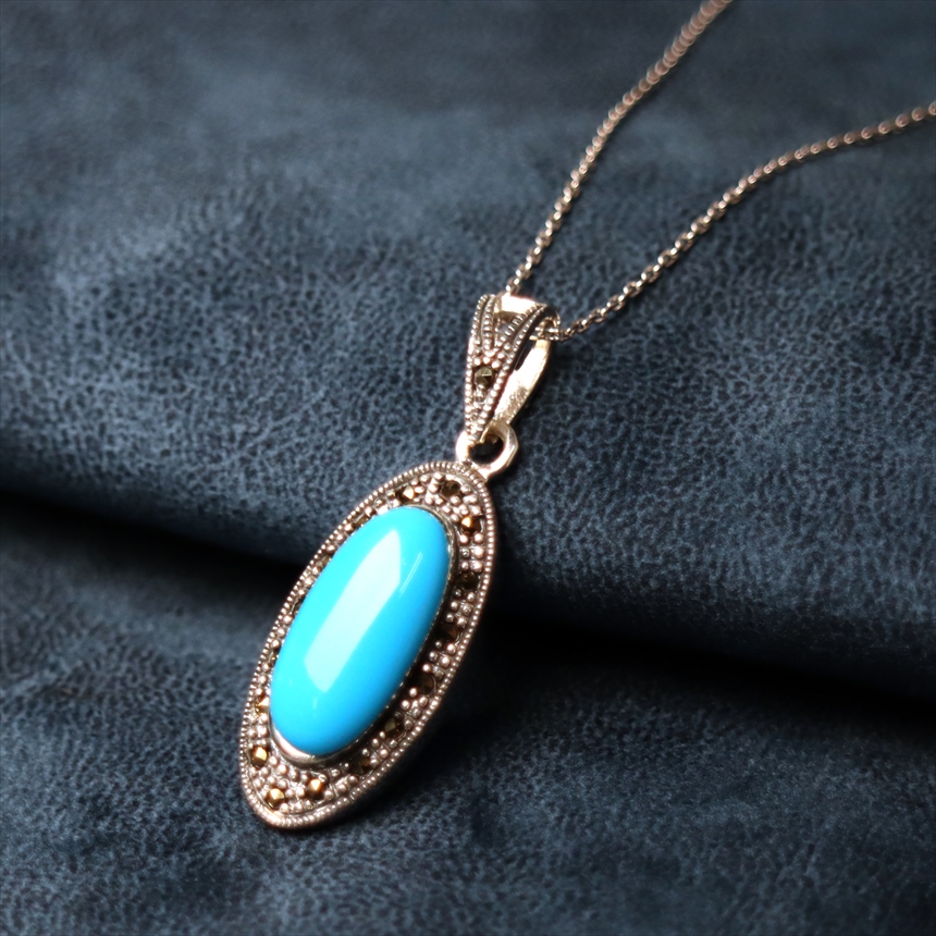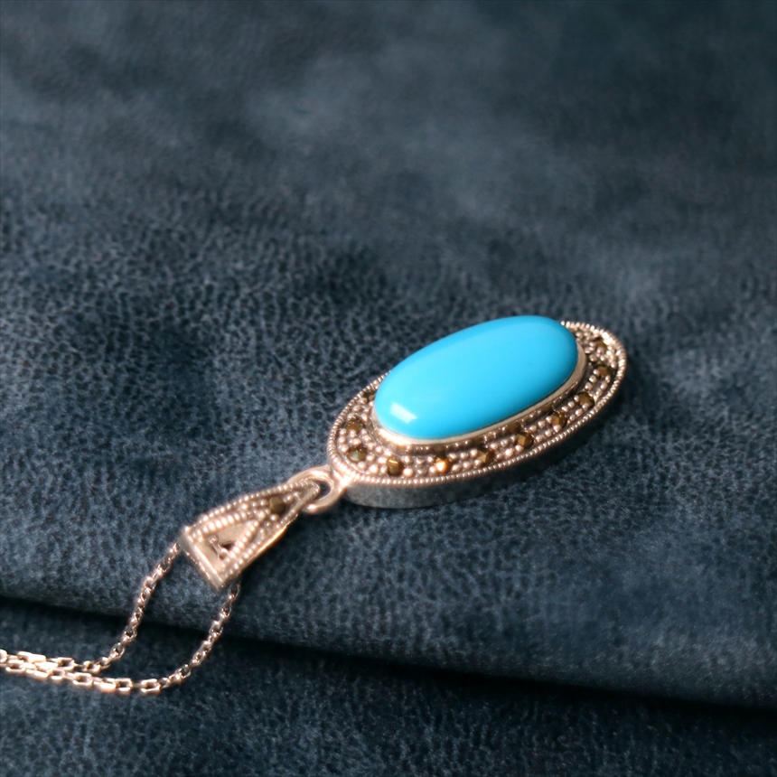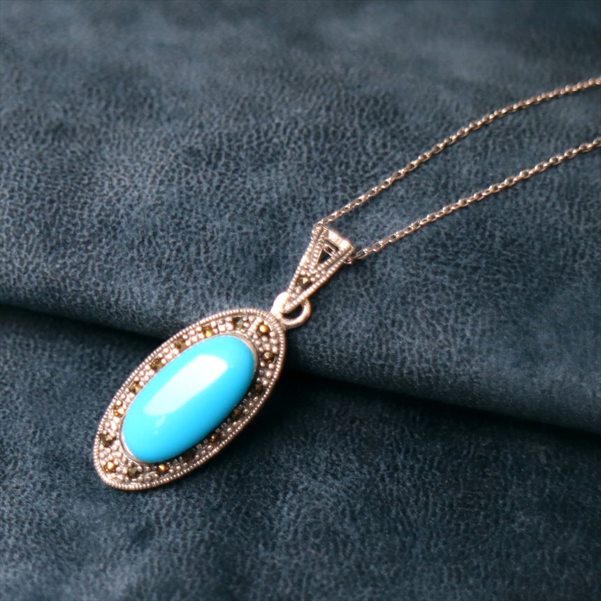 シルバーペンダント トルコ石×マルカジット オーバル Turkish Silver Jewelry ネックレス マーカサイト ターコイズ