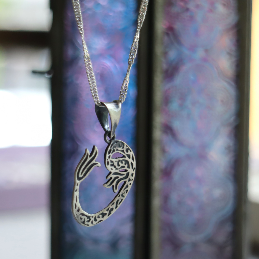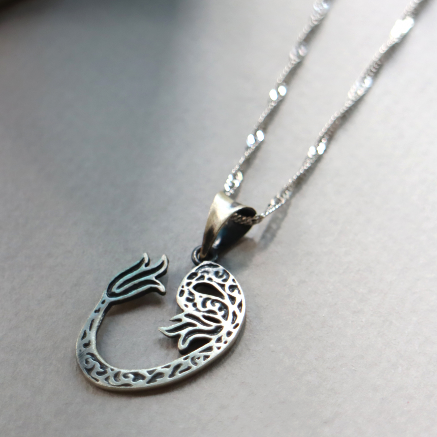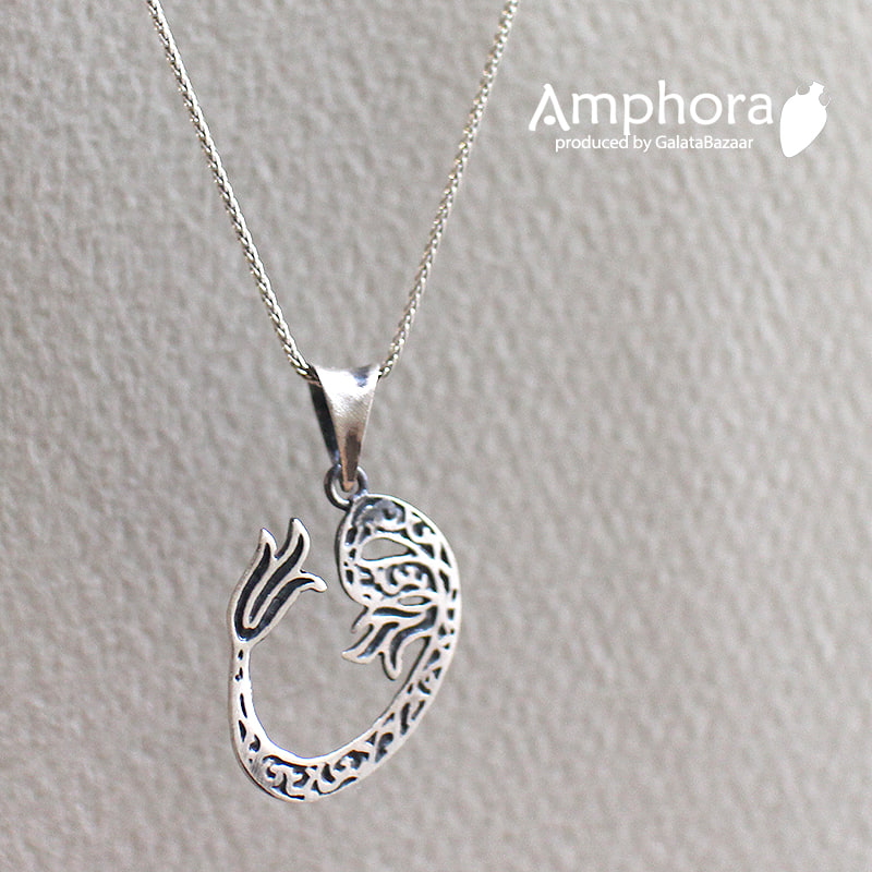 アラビア文字のカリグラフィにオスマントルコのチューリップをアレンジした、シルバーペンダントです。40cmのスクリューチェーンを合わせています。