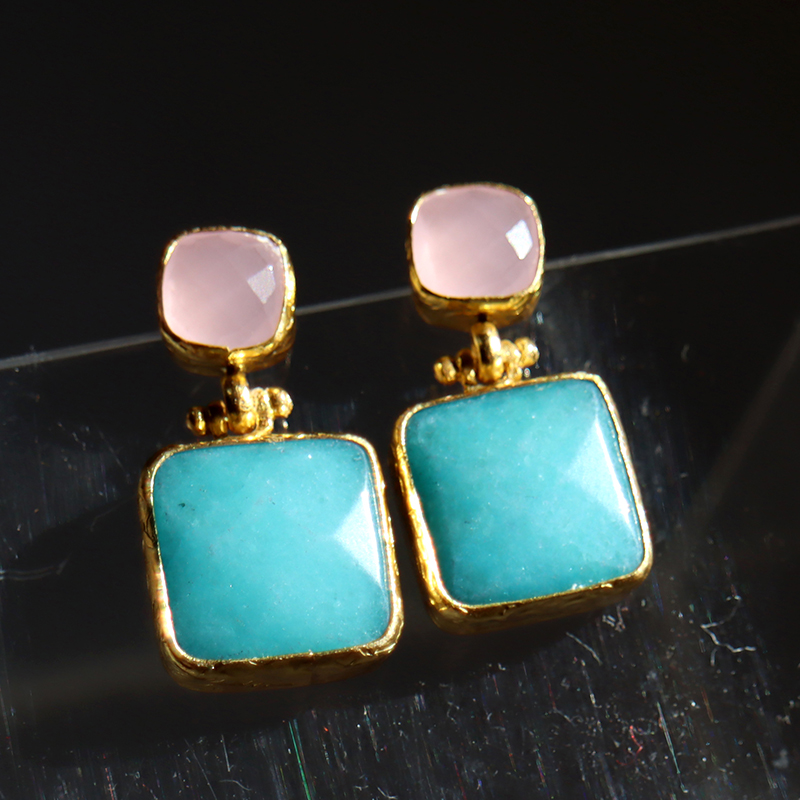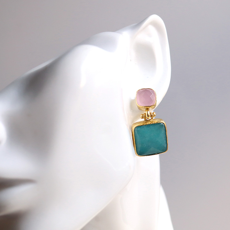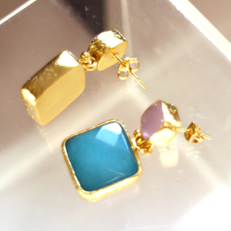 アルサメイア バイカラースクエアピアス 天然石22Kゴールドプレーテッド トルコジュエリー 色石