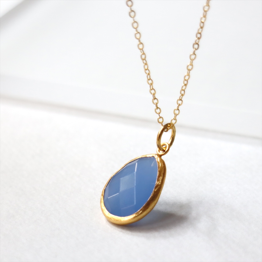| 天然石(ブルーカルセドニー)、真鍮(22kゴールドプレーテッド) |