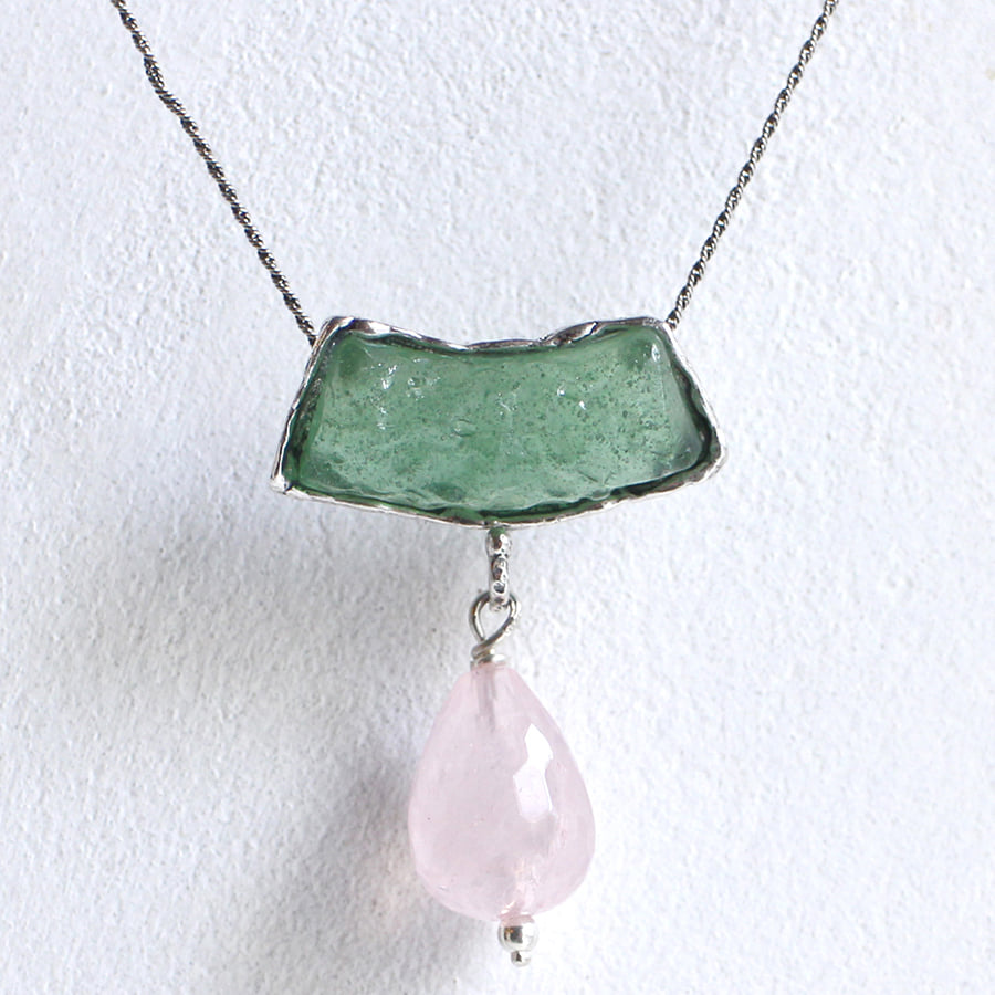 | ガラス(古代ローマンガラス)・ローズクォーツ・シルバー925 |