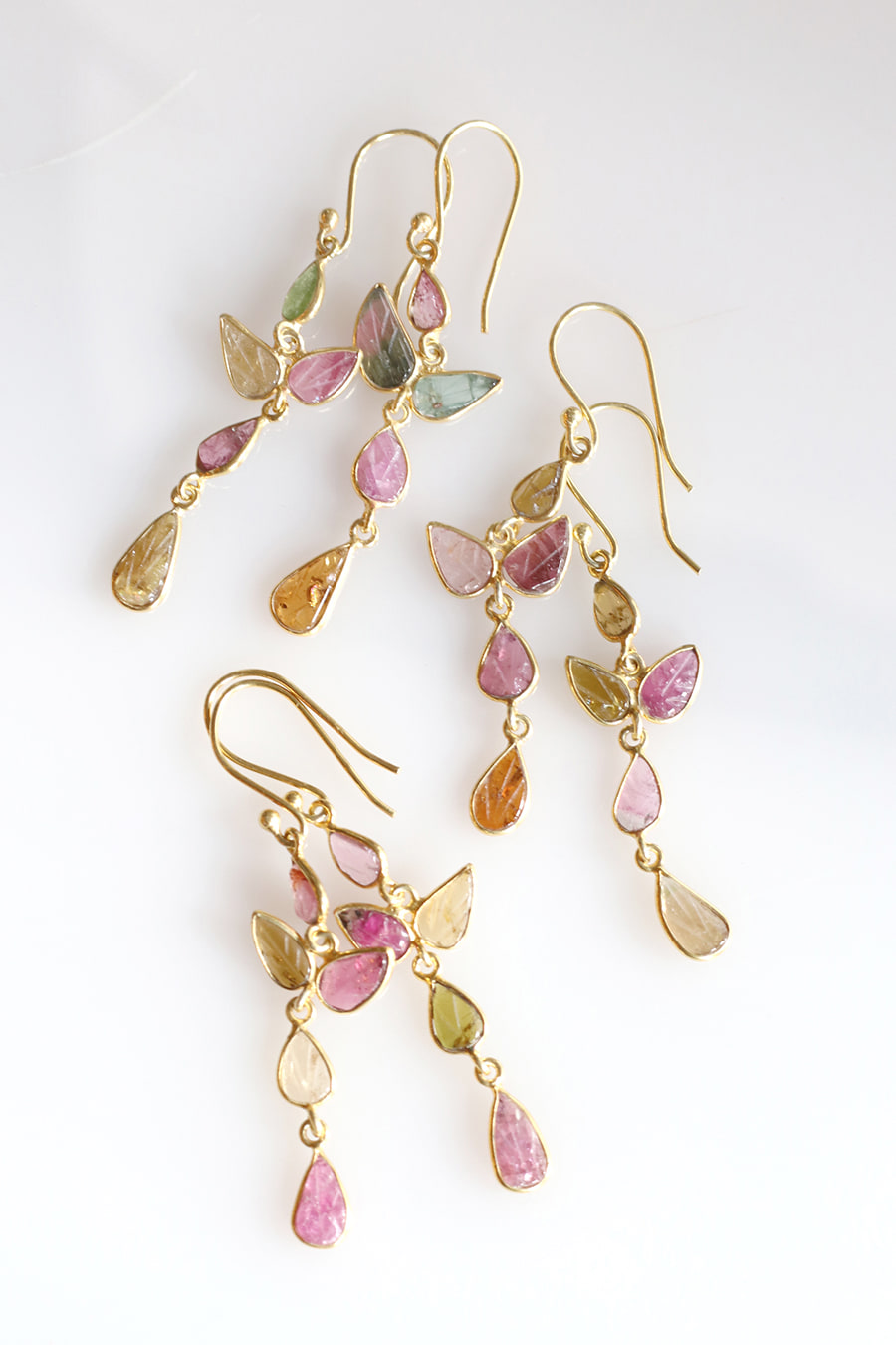 トルマリンリーフピアス Tourmaline Jaipur ジャイプール 天然石シルバーピアス マルチカラー