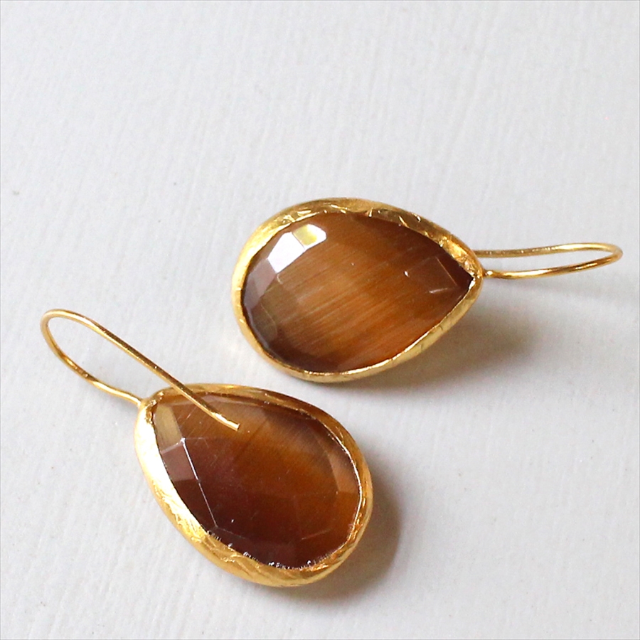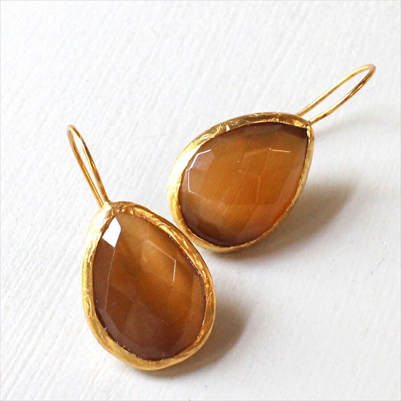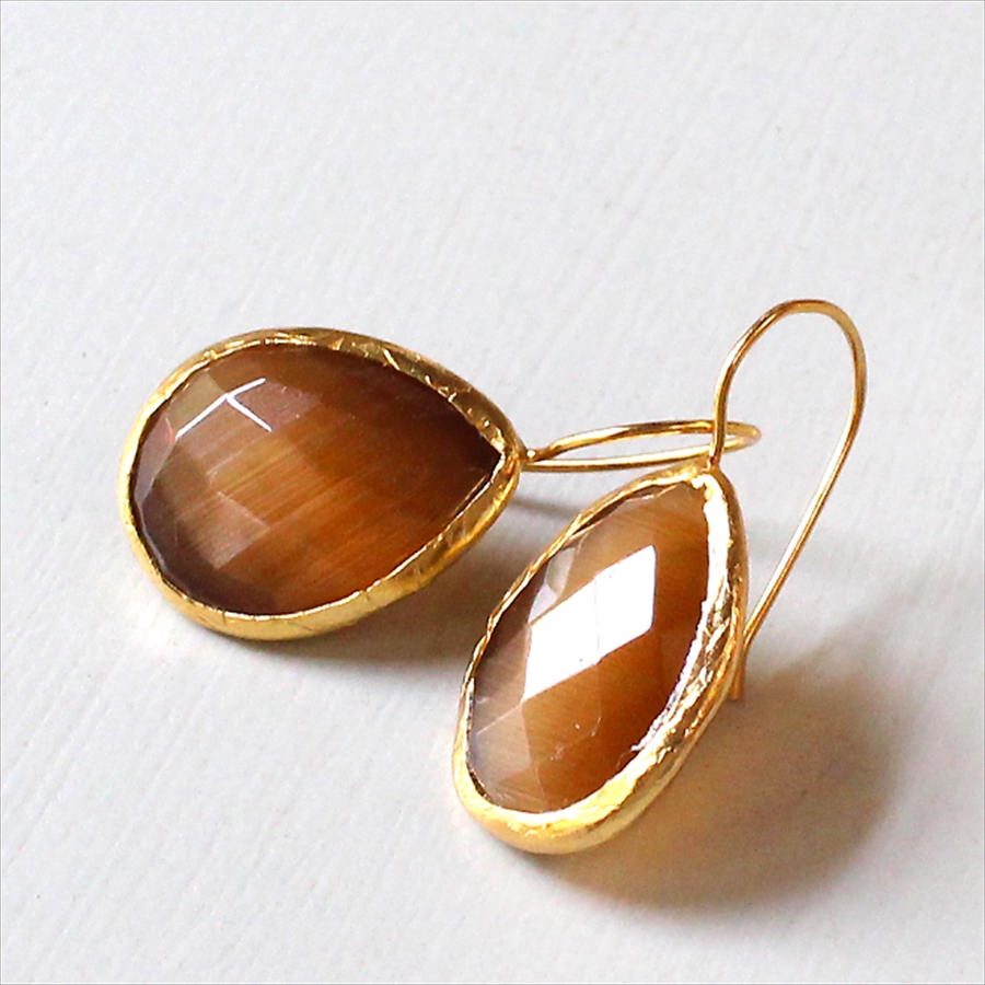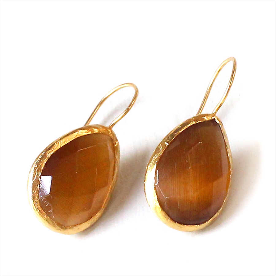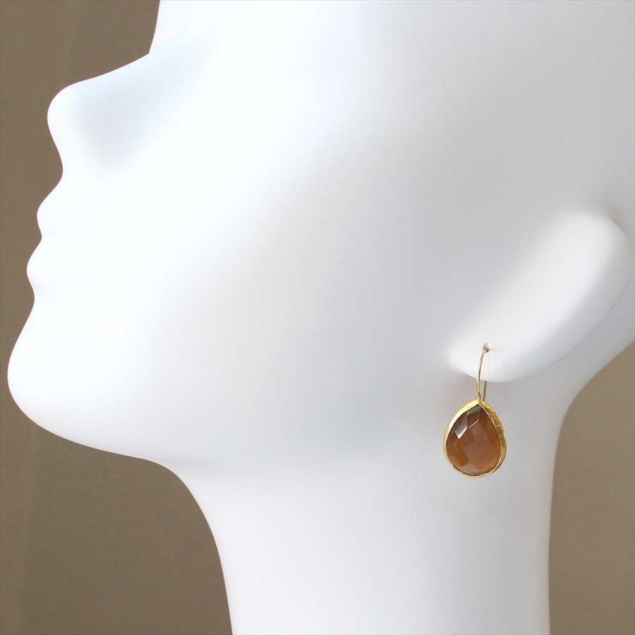 天然石ピアス ハニーアゲート ドロップ/ペアシェイプ ひと粒 イスタンブール発トルコハンドメイドジュエリー アルサメイア