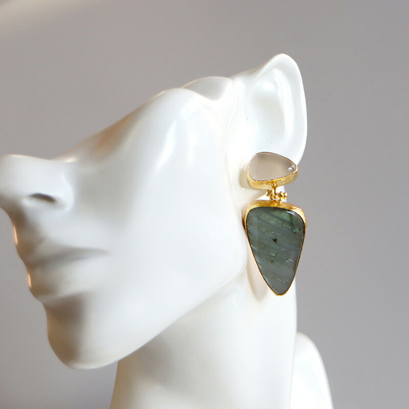 | 天然石(ラブラドライト&ホワイトかルセドニー)、真鍮(22kゴールドプレーテッド) |