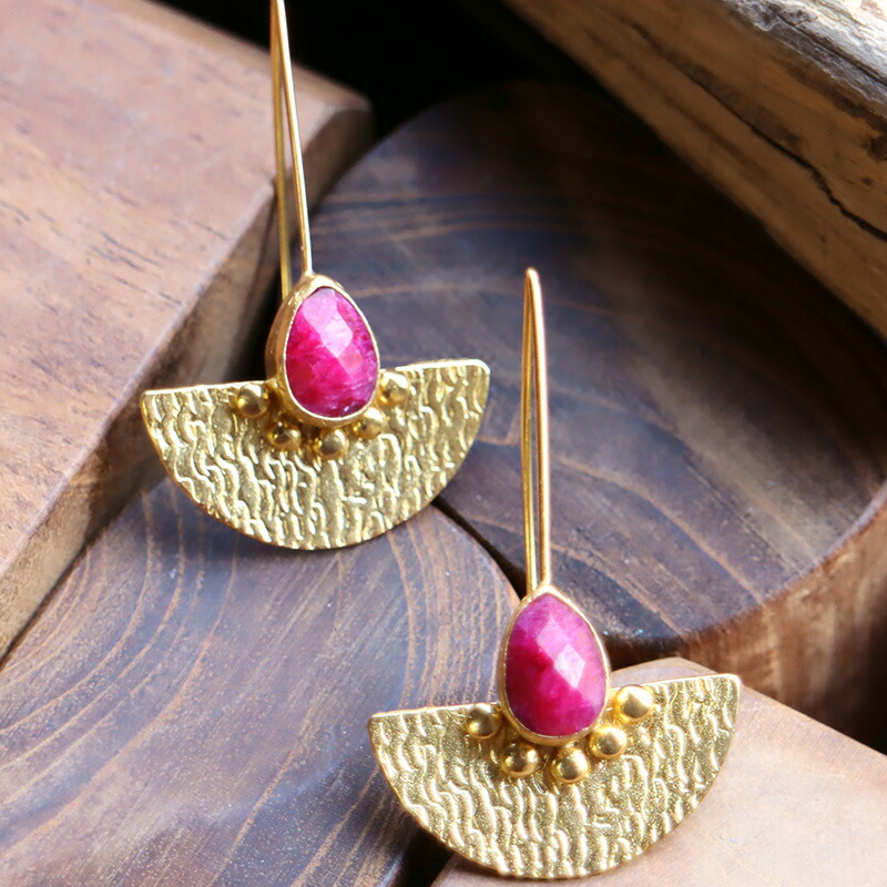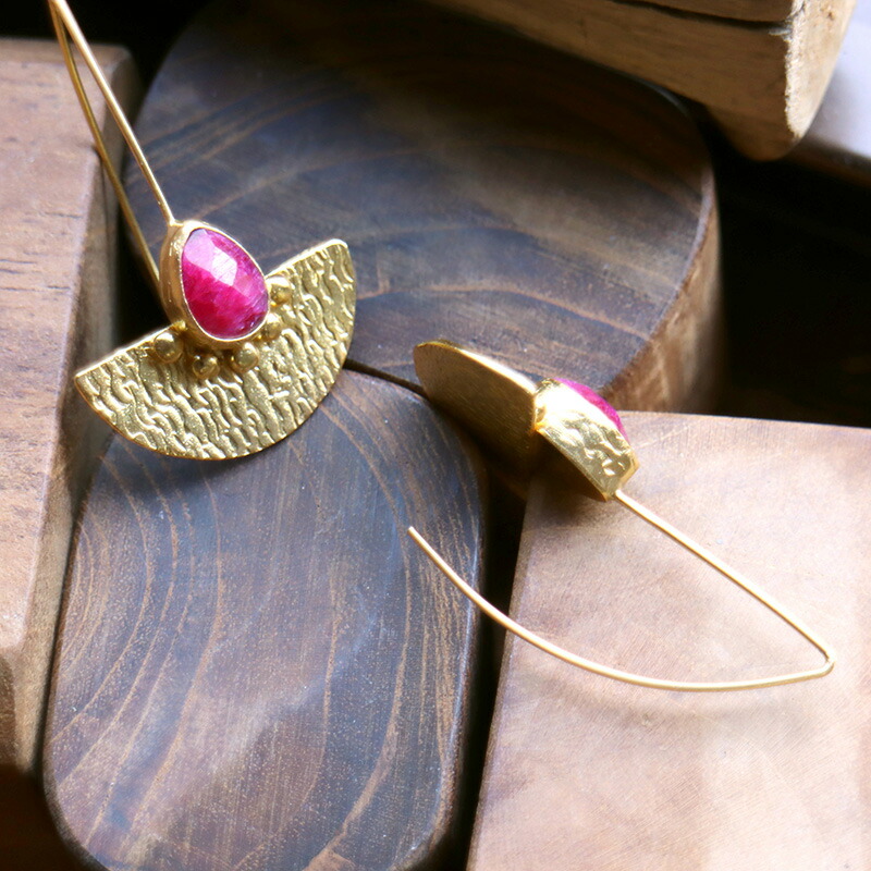 ルビーピアス Arsameia 22Kゴールドプレーテッド トルコジュエリー
