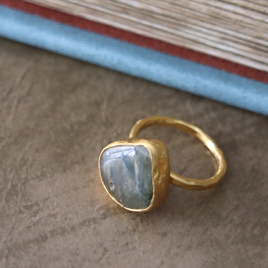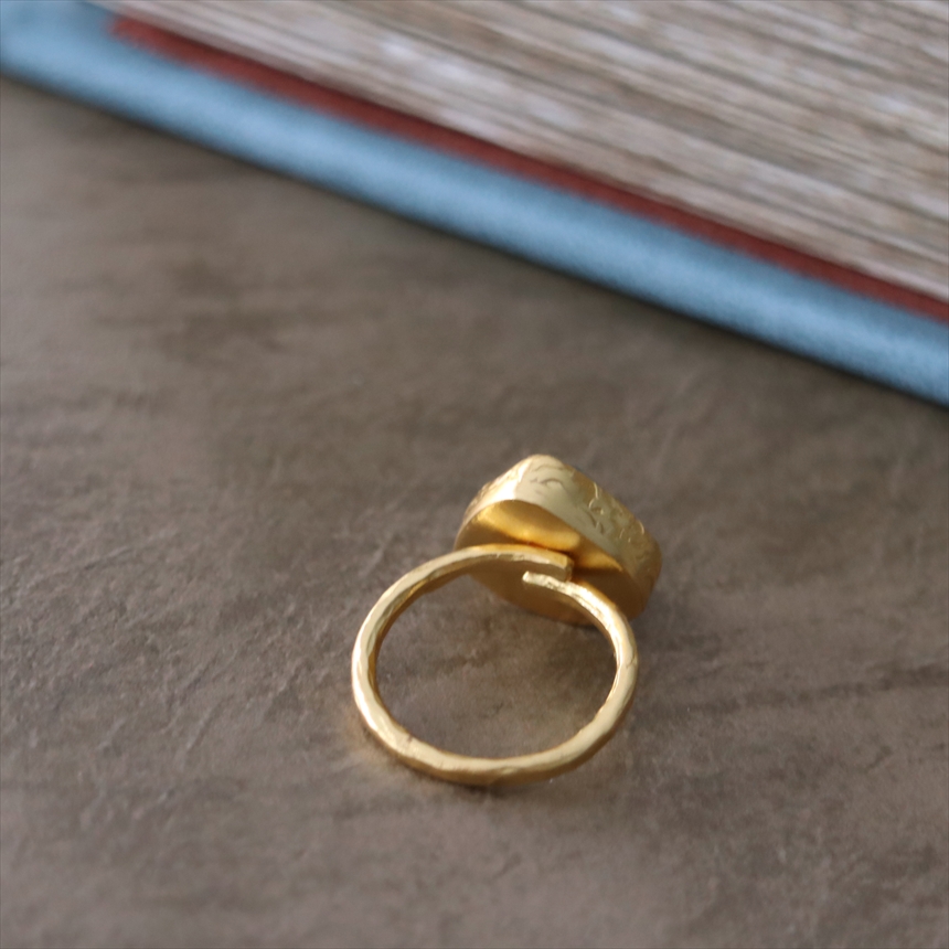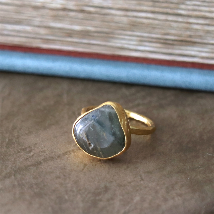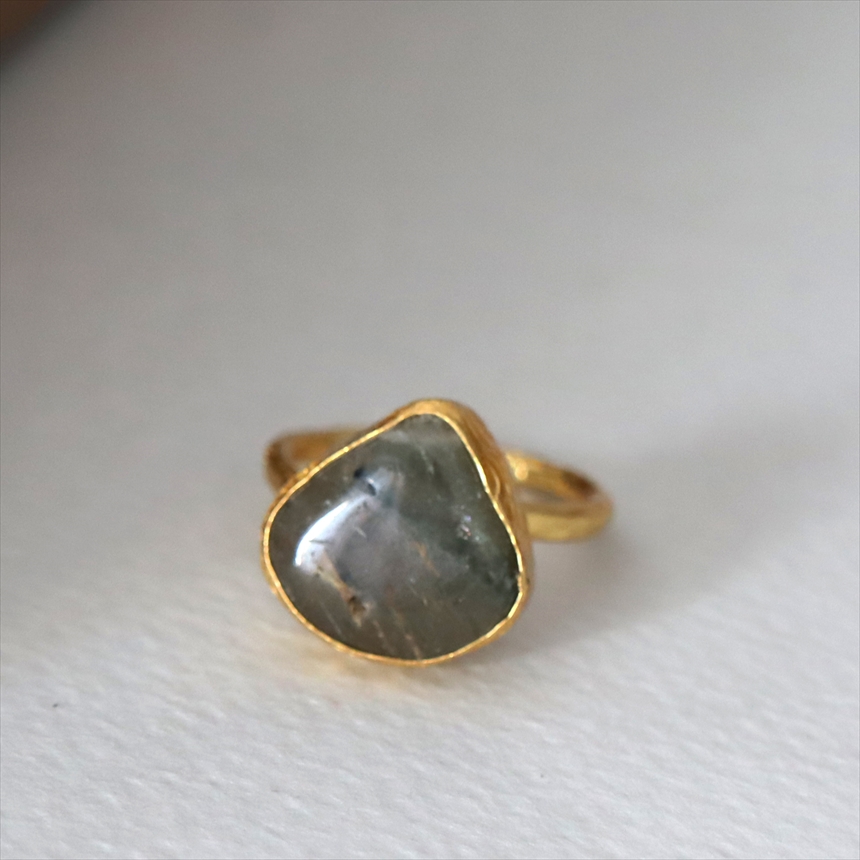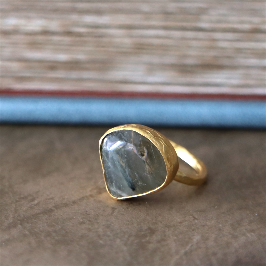 アルサメイア ブラックルチルクォーツラフカットリング 天然石22Kゴールドプレーテッド トルコジュエリー カラーストーン 色石