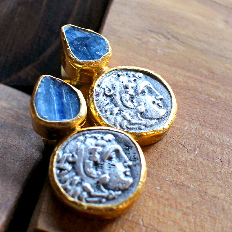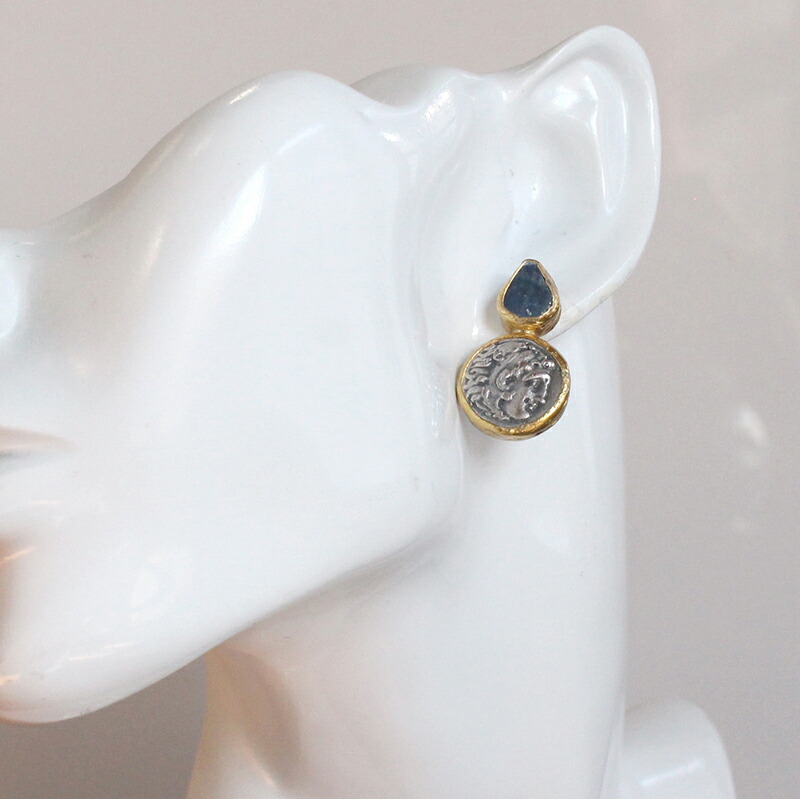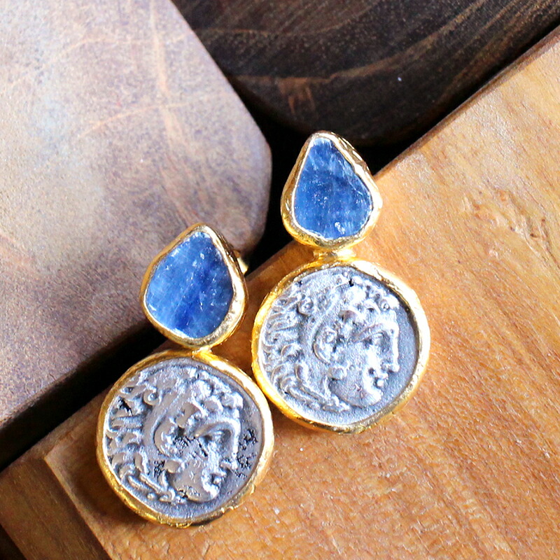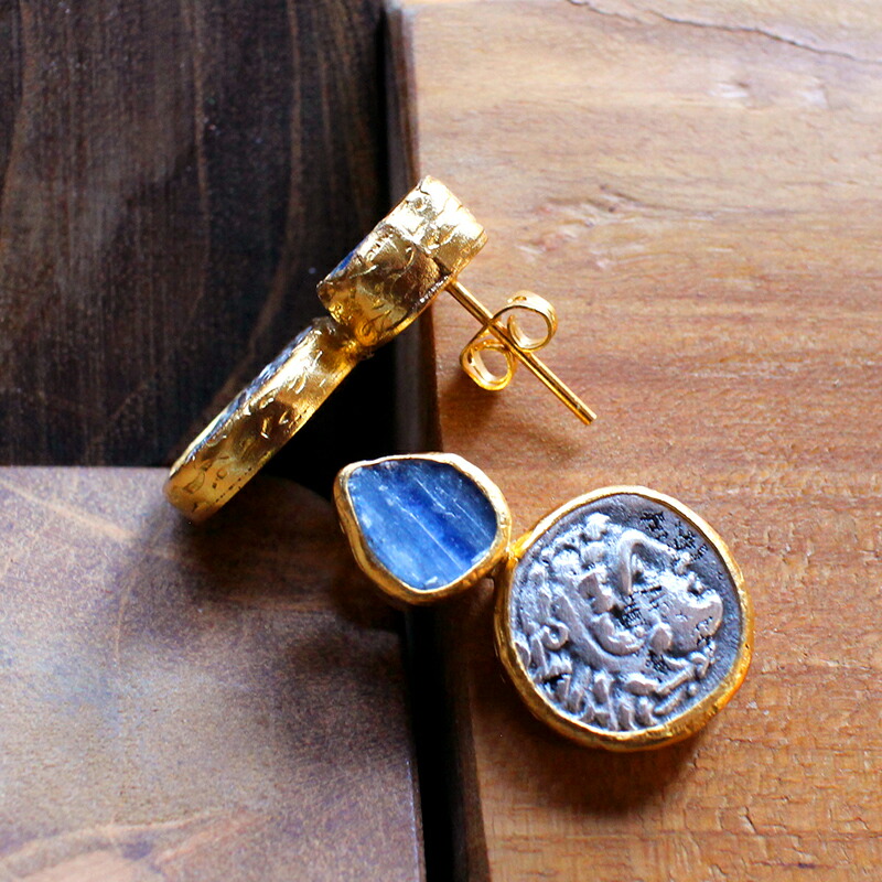 アルサメイア ラピスラズリ&コインピアス 【現品】 天然石22Kゴールドプレーテッド トルコジュエリー シルバー&ゴールド