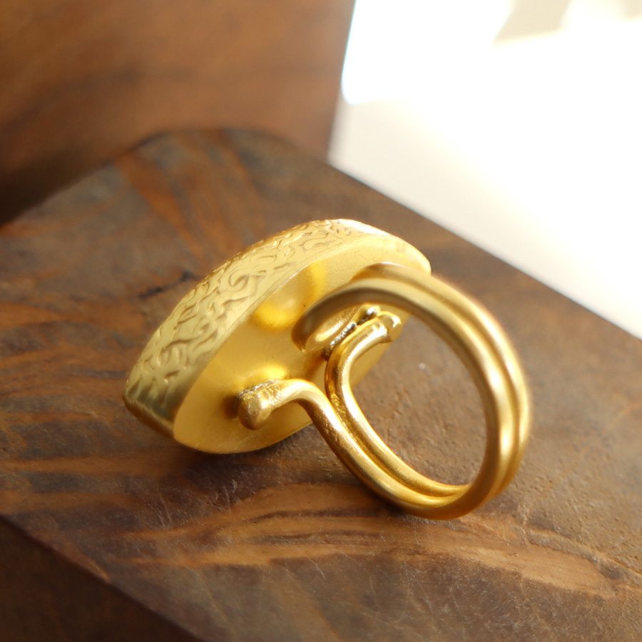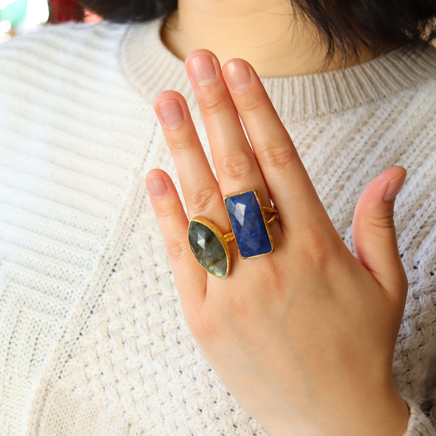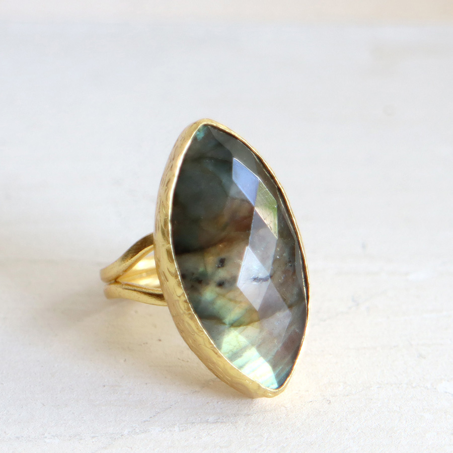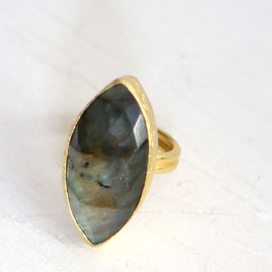 アルサメイア・アーモンド形ラブラドライトリング 22Kゴールドプレーテッド トルコジュエリー