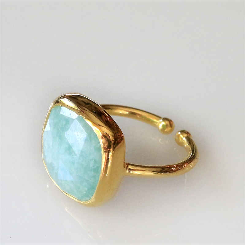 アマゾナイト スクエア シルバーリング 18KGF 天然石 トルコジュエリー カラーストーン