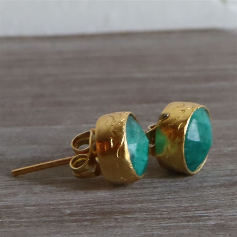 アルサメイア ひと粒エメラルドピアス ラウンド 天然石22KGP トルコジュエリー