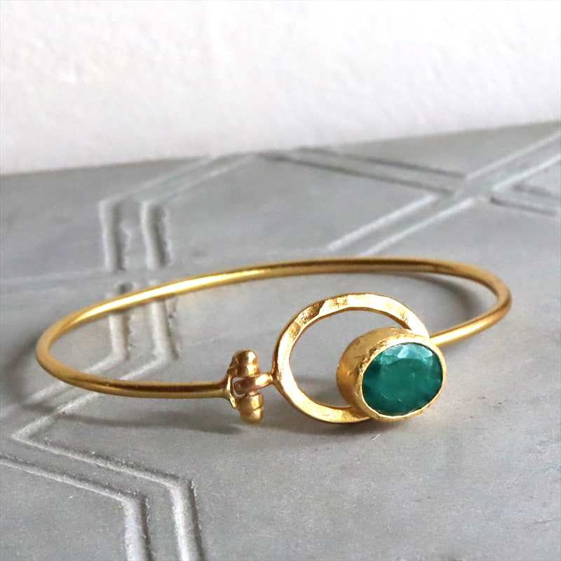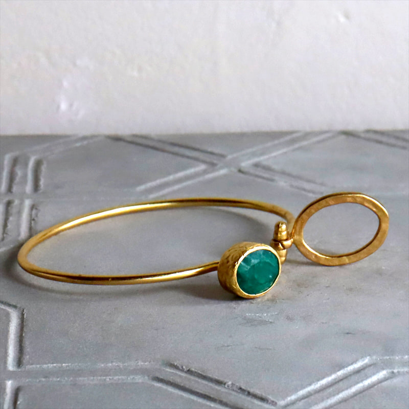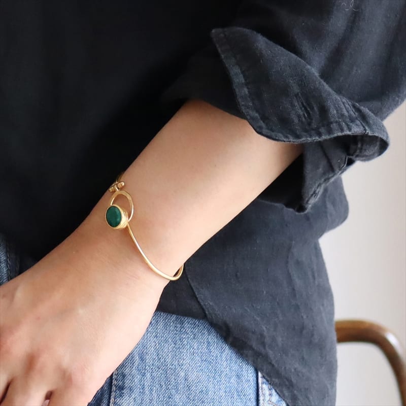 アルサメイア ゴールドプレートブレスレット トルコジュエリー 天然石 エメラルドバングル 色石