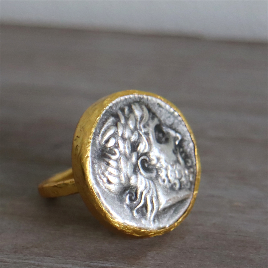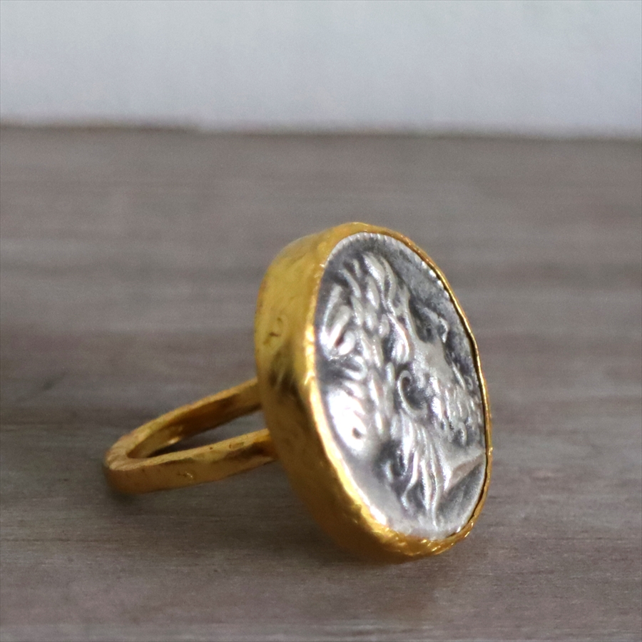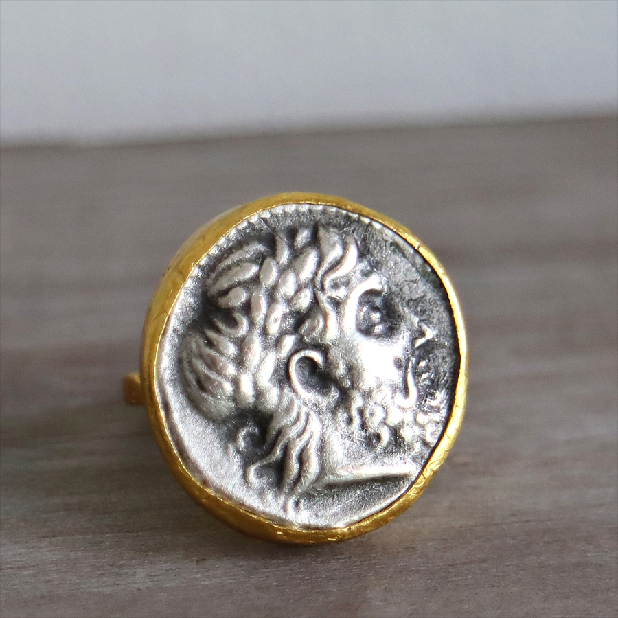 ビッグコインリング ゴールド&シルバー (大) 古代ローマ帝国 オールハンドメイド K22GP 白金