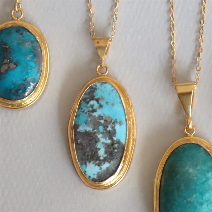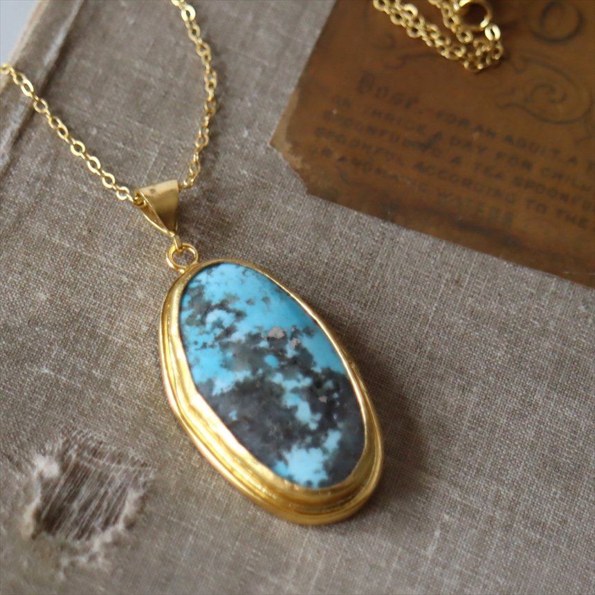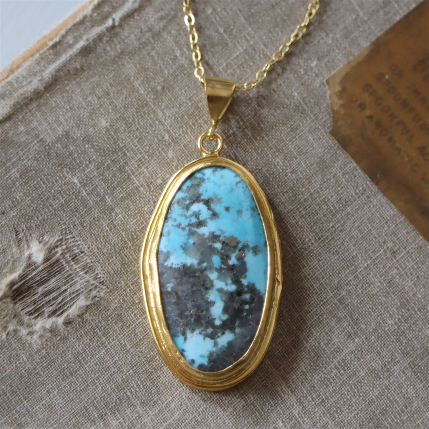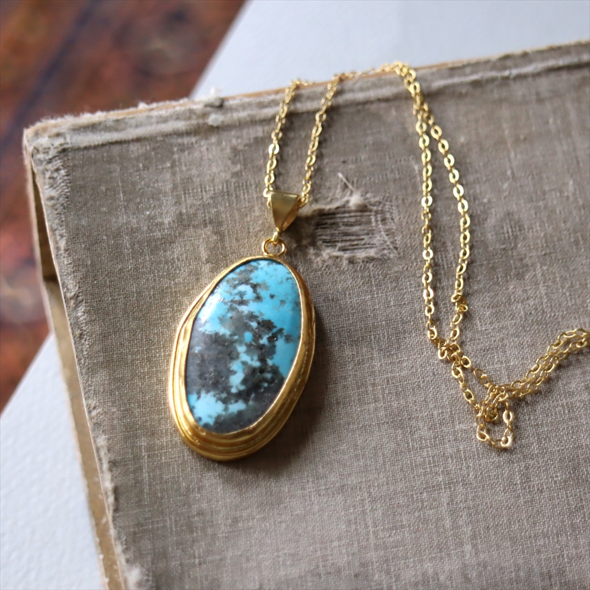 ターコイズ ペンダント オーバル 60cmチェーン 天然石 22KGP ネックレス トルコ石 一点物