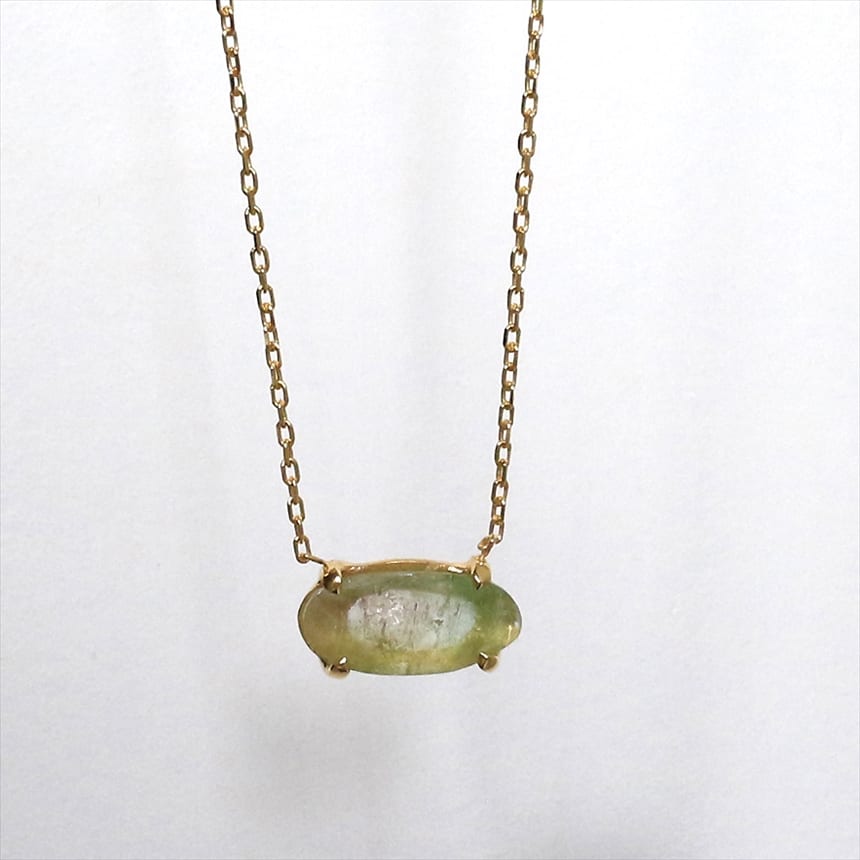 淡いピンクからグリーンのグラデーションカラーが美しいウォーターメロントルマリンネックレス。やさしく光を透し美しくきらめきを放ちます。爪留めのデザインが上品な印象。ウォーターメロントルマリンとは、その名の通り、スイカのように外側がグリーンで、内側が赤いピンクの配色からなるバイカラートルマリンのことをいいます。