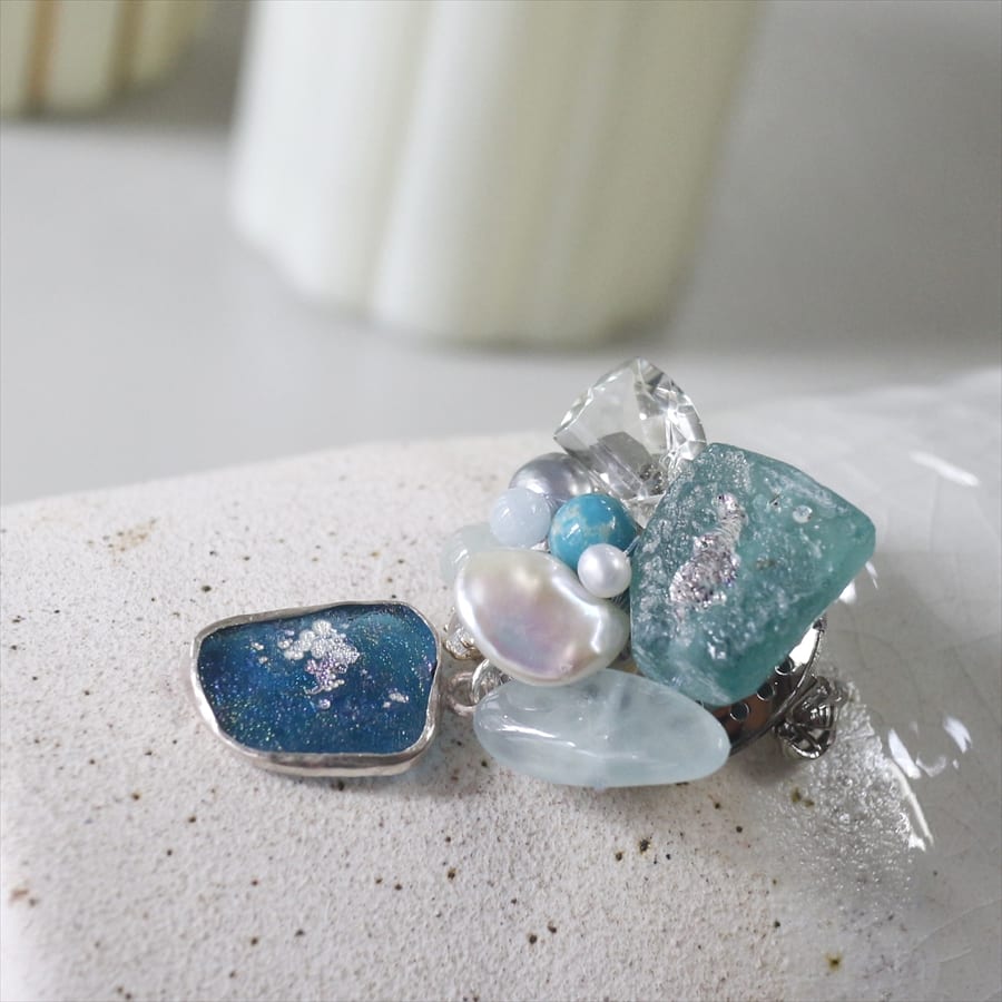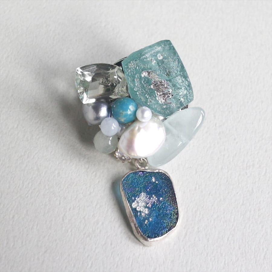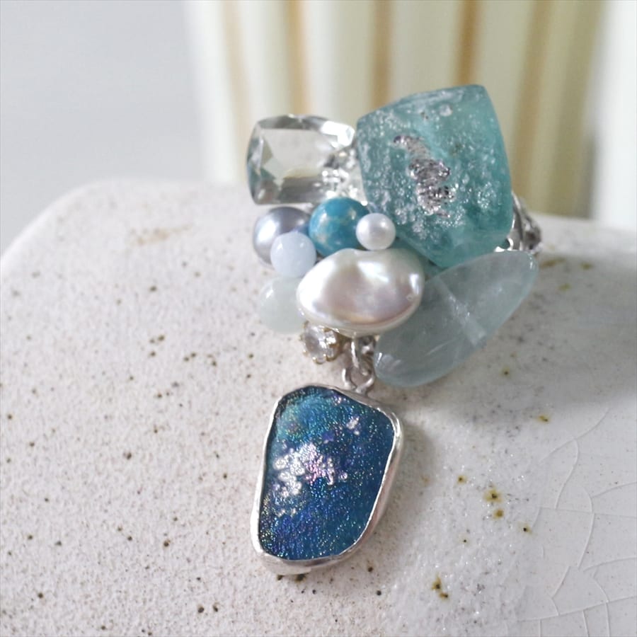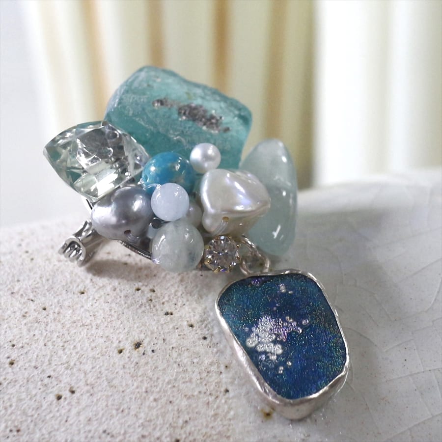 | 古代ガラス, シルバー925, グリーンアメジスト, アクアカルセドニー, バロックパール, メタルパーツ |