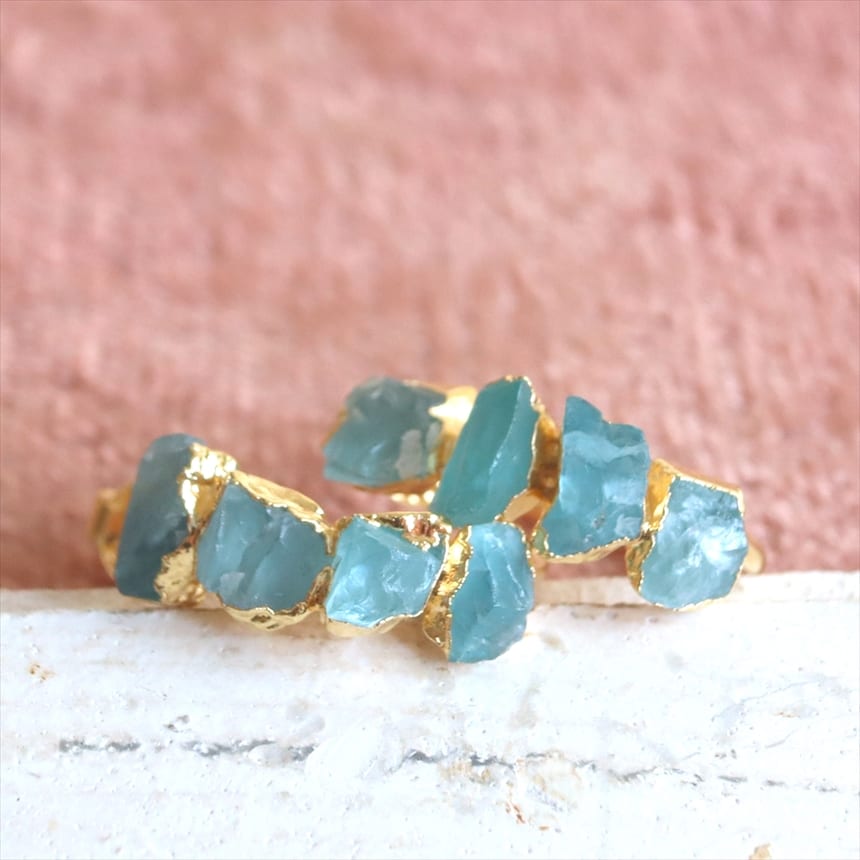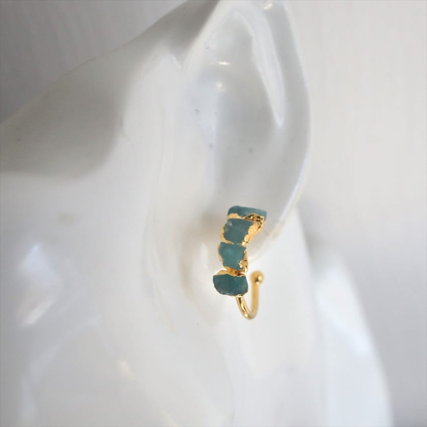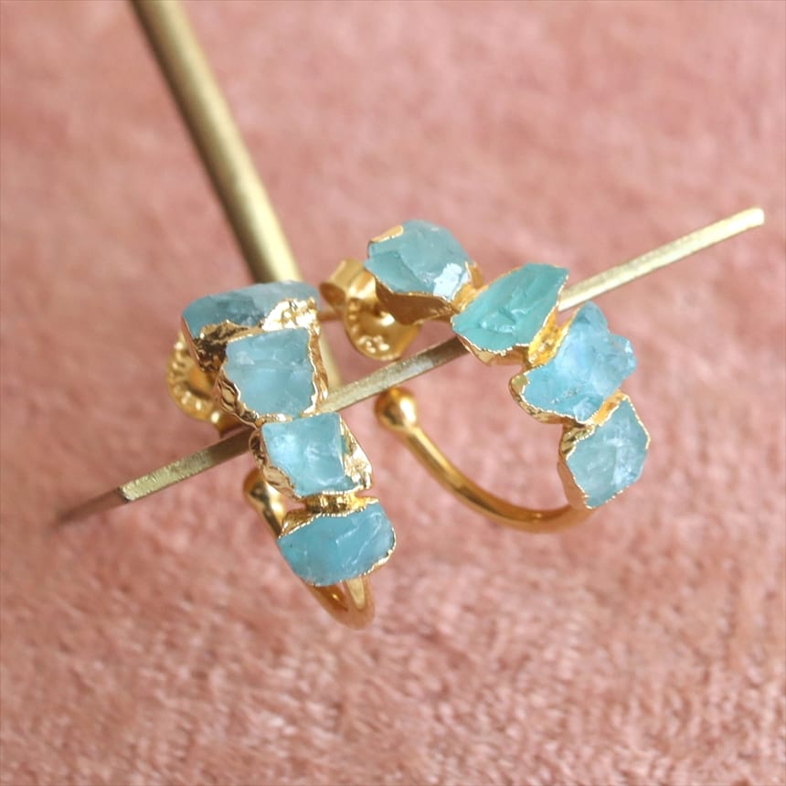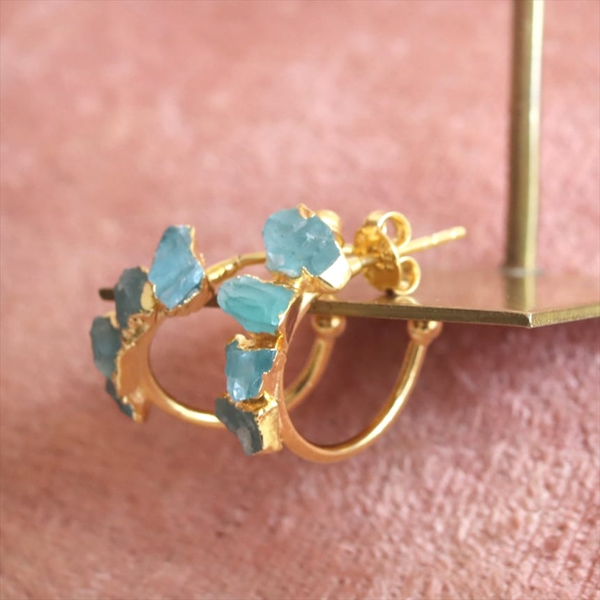 4粒のアパタイト シルバーピアス ラフカット 天然石 フープピアス
