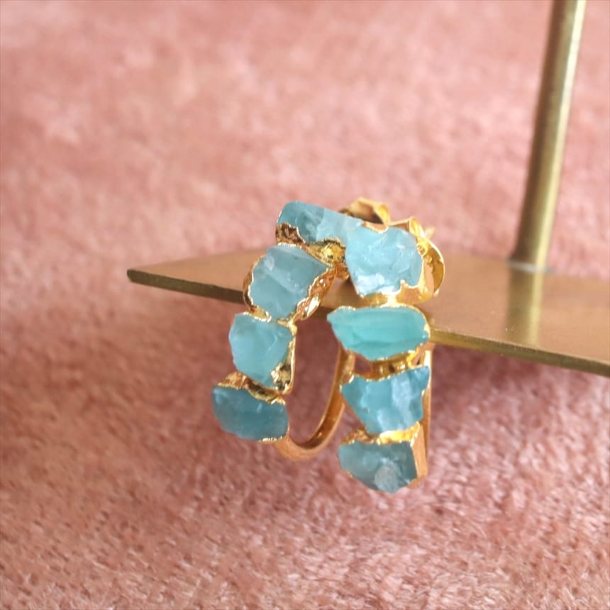 フープ状リングの直径約1.5cm、天然石4粒の長さ約2cm。<br><br>天然石には、気泡や亀裂、混入物(インクルージョン)などがございますが、石の個性としてご理解くださるようお願いいたします。※写真の現品をお届けします。