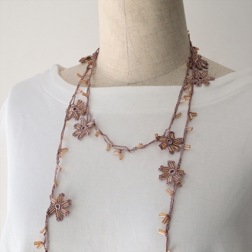 トルコのレース編み「オヤ」ラリエット ボンジュックオヤ マロンピンク