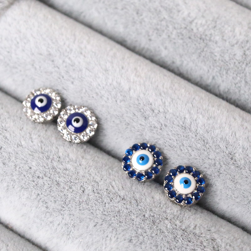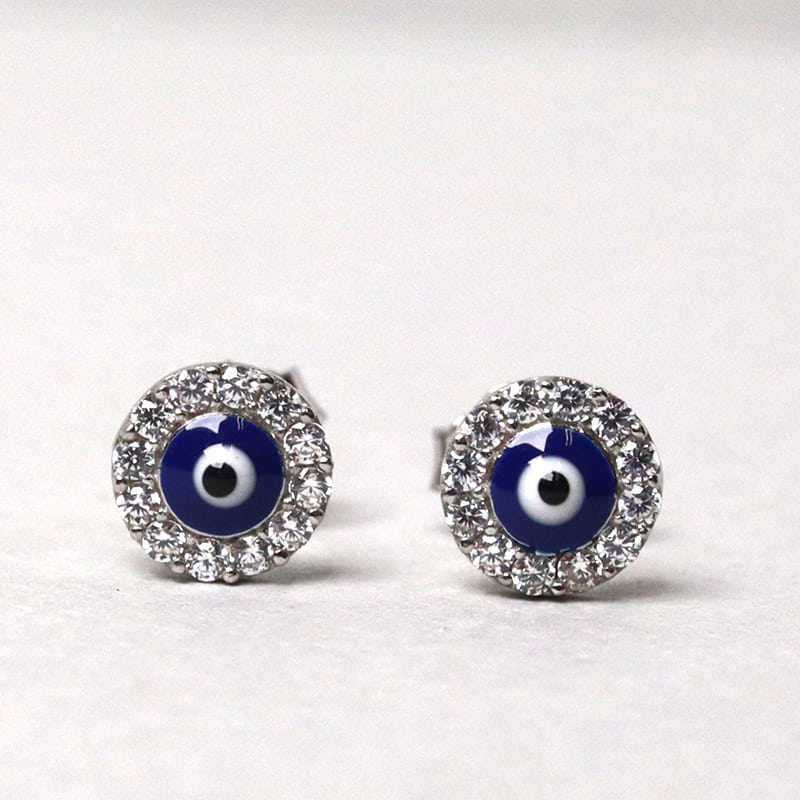 キラキラした微細なジルコニアで飾られたナザルボンジュウのスタッドピアス。<br><br>