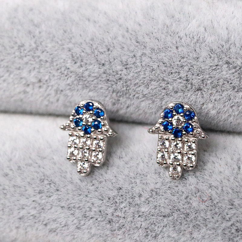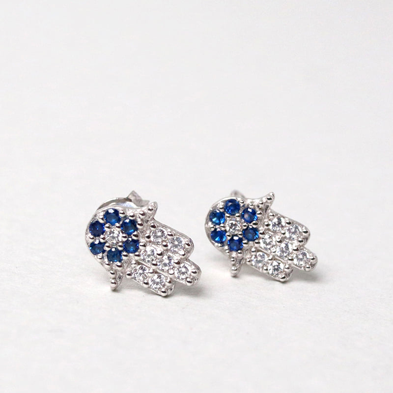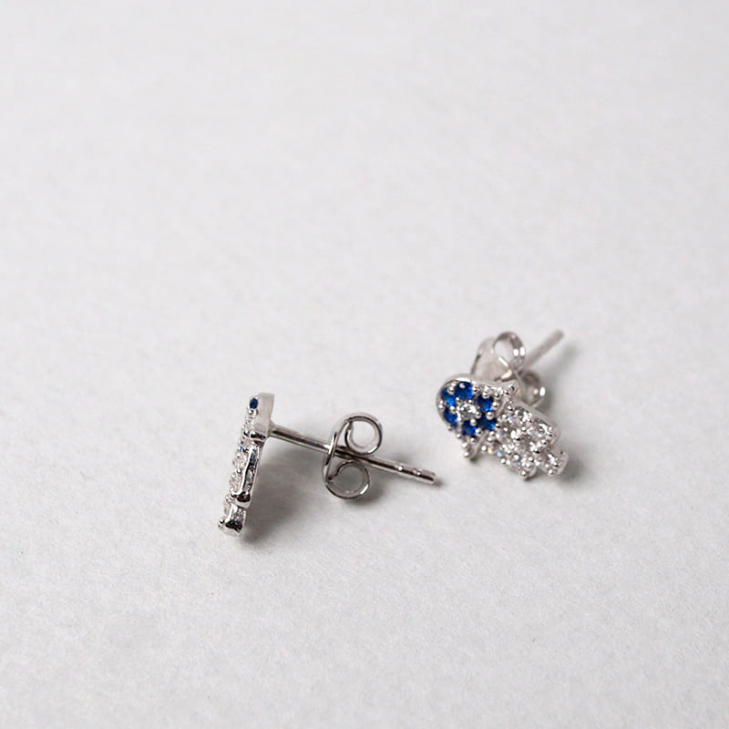 キラキラした微細なジルコニアで飾られたスタッドピアス。手のひらの形がモチーフになっています。<br><br>