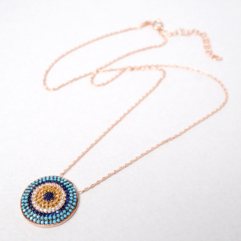 ナザルボンジュウ シルバー925&ジルコンペンダント ターコイズ ラウンド