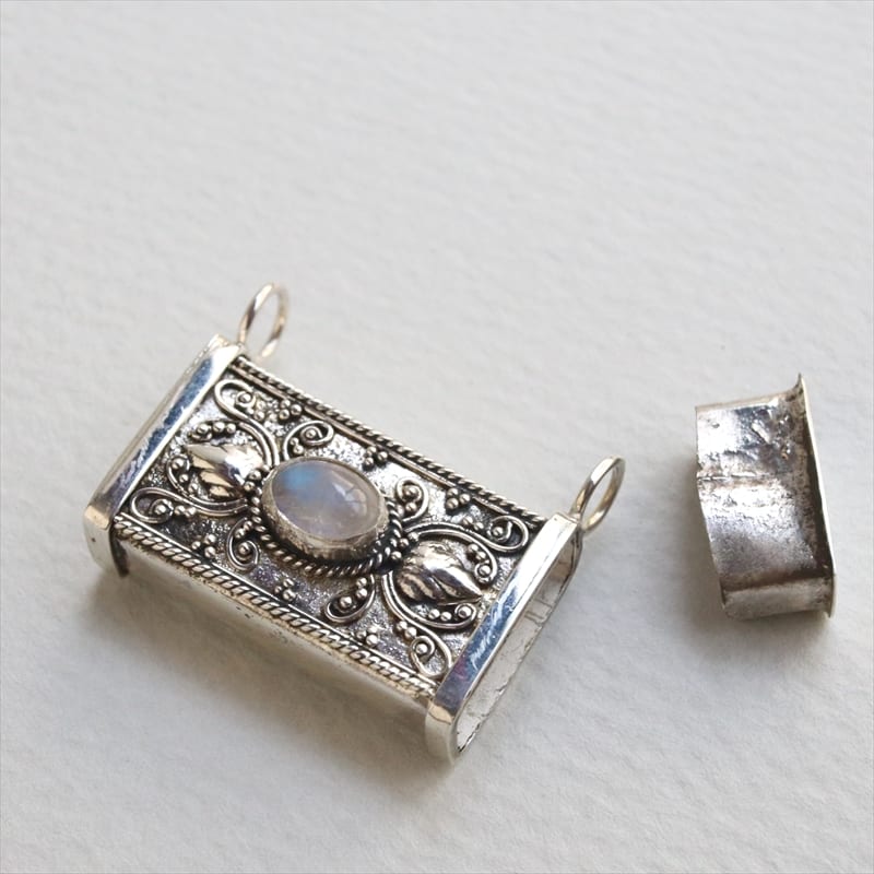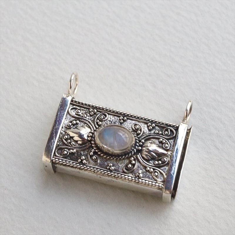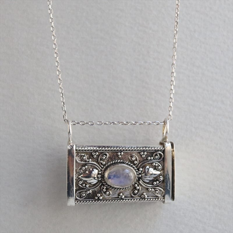 シルバーロケットペンダント箱型 ムーンストーン 40cmチェーン付 Turkish Silver Jewelry