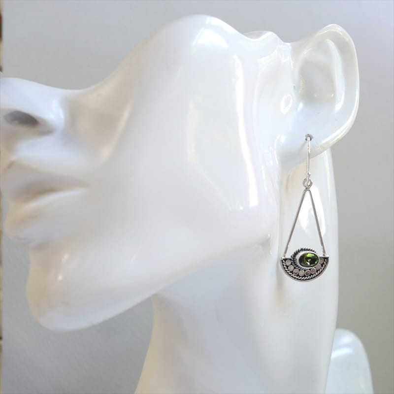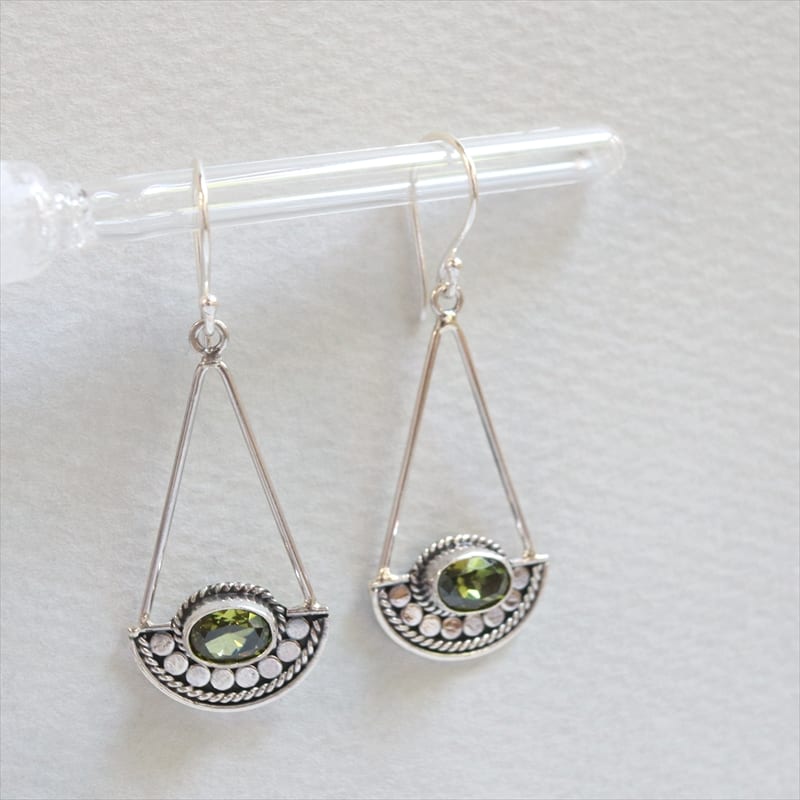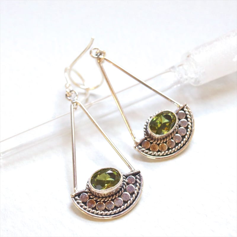 シルバー ピアス ハンギング,ペリドット Turkish Silver earring, classic Ottoman motif