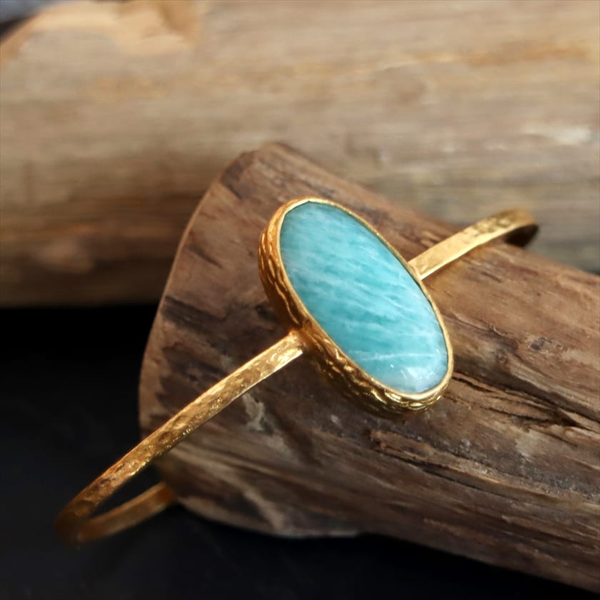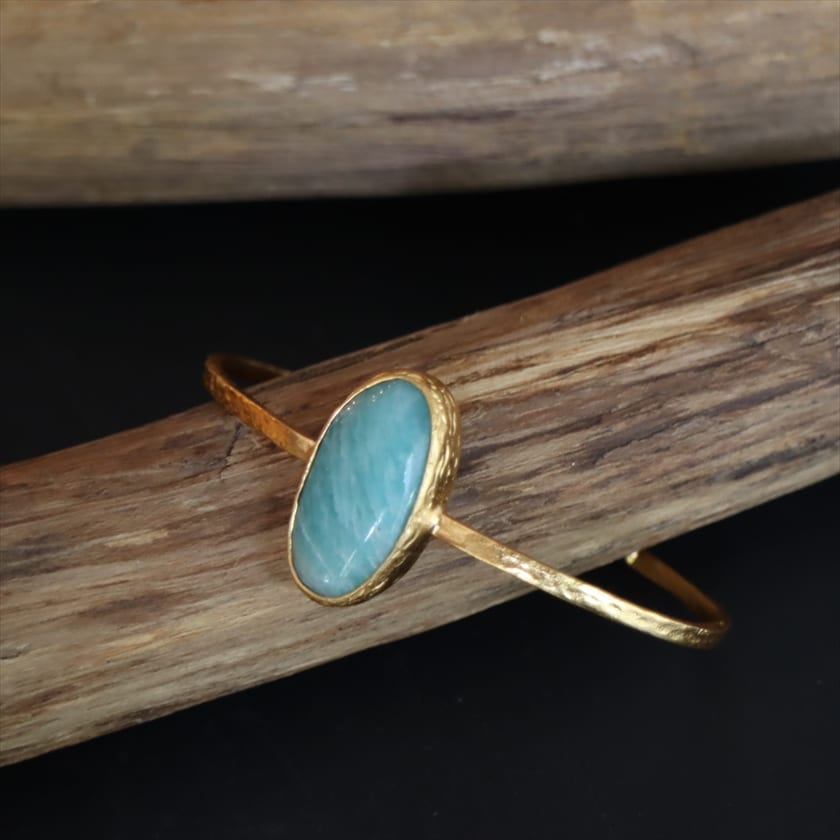 アルサメイア アマゾナイト ビッグストーンバングル 大粒 天然石22KGP トルコジュエリー オーバル