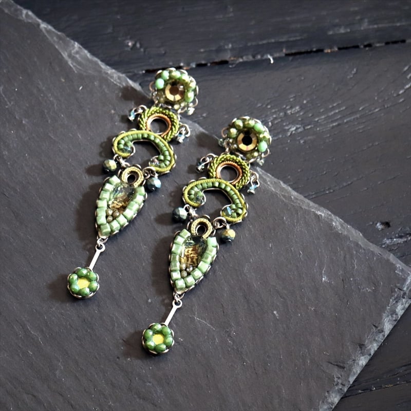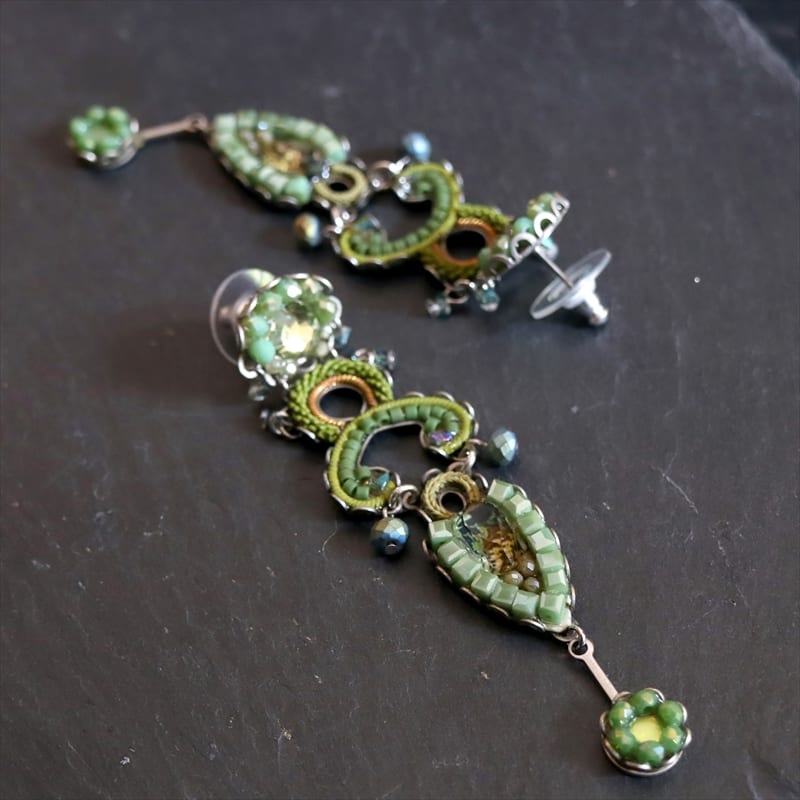 やわらかなグリーングラデーションのピアス。小さな揺れるチャームがポイント!
