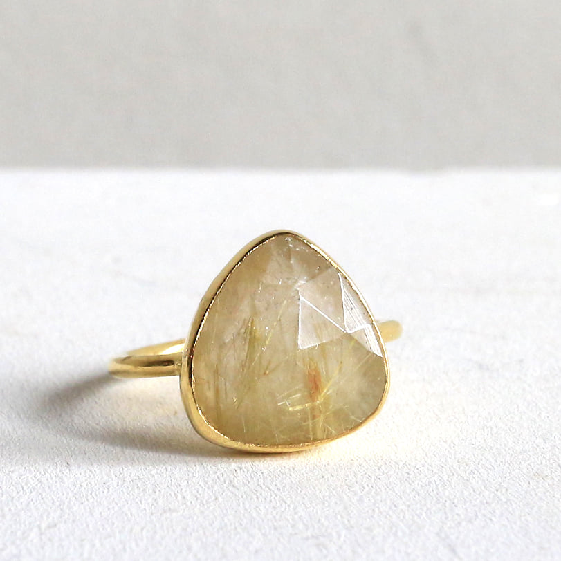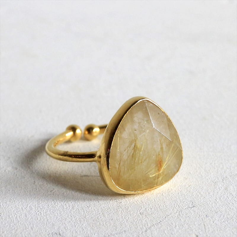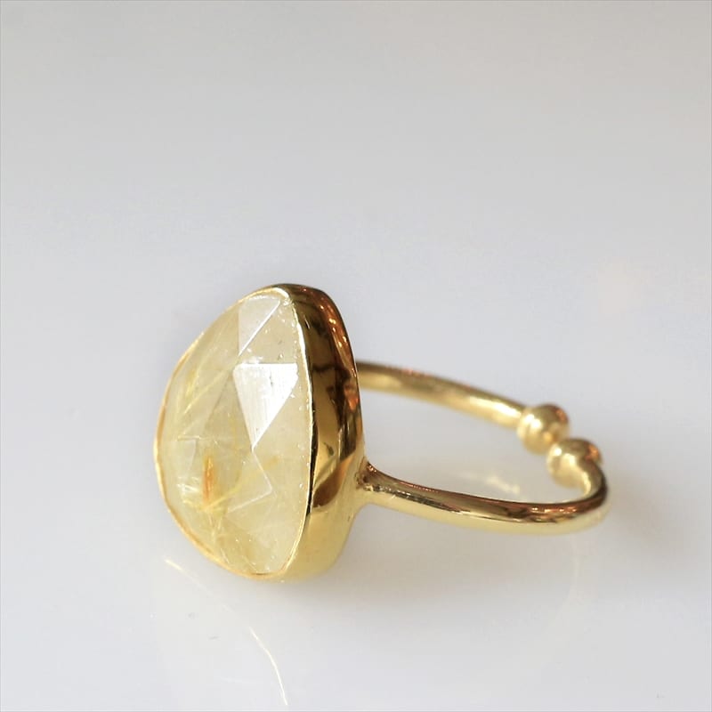 ルチルクォーツ ラフカットシルバーリング 18KGF 天然石 トルコジュエリー カラーストーン