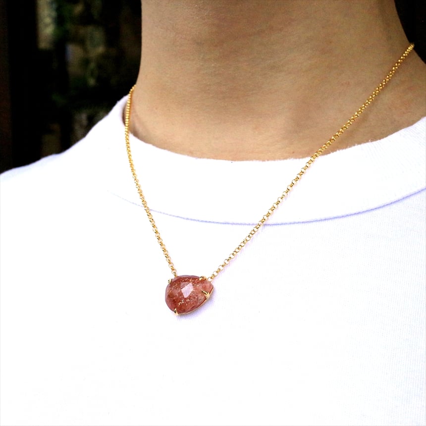 サンストーン ラフカット シルバーネックレス 18KGF 天然石 トルコジュエリー カラーストーン 色石