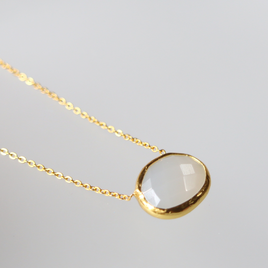 ホワイトカルセドニー 横型オーバルネックレス 22KGP アルサメイア 天然石ひと粒ペンダント