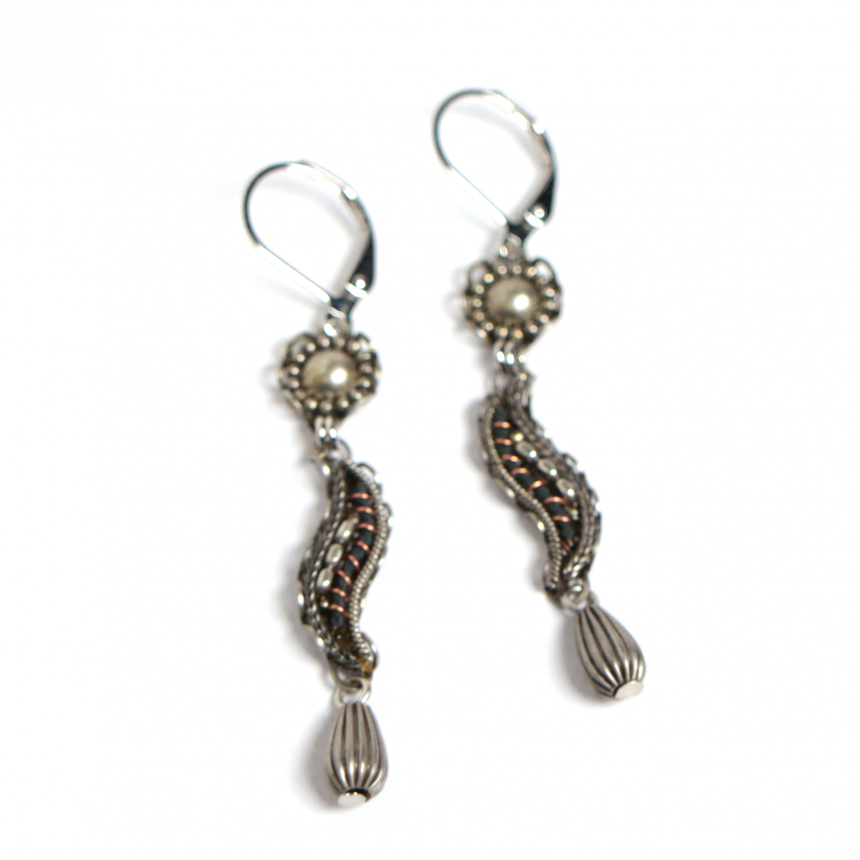 この秋冬のIndigo Collectionは、マットなシルバーに、真鍮色のゴールドとペールトーンのアクセントカラーが加わって、ソフトなイメージになりました。古い時代の宝石箱に眠っていたヴィンテージジュエリーといった雰囲気です。