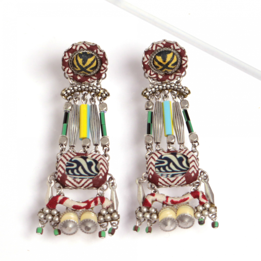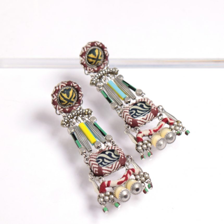 【アヤラ・バー Hip Collection とは? 】 Hip Collectionは1970年代のヒッピー達のファッションを取り入れた、アヤラ・バーの人気のコレクションのひとつです。、布やリボン、ニット素材などを取り入れた、ユニークな組み合わせが特徴。カジュアルにも使いやすく、大ぶりで大胆なデザインがファンを惹きつけています。テクスチャの美しい小さなパーツのひとつひとつは、アヤラバーのアトリエで手作りされており、丁寧な仕上がりには目を見張るものがあります。