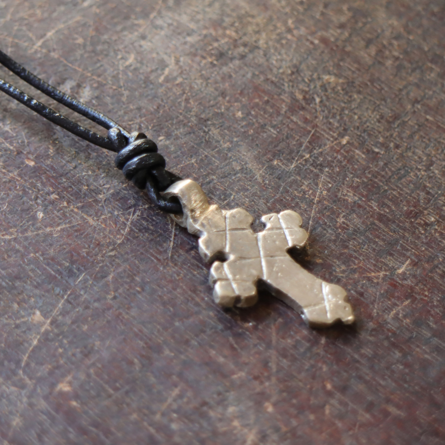 キリスト教国であるアフリカの角・エチオピアで、人々がいつも首にかけている手作りのクロスです。ひとつひとつ形が違い、武骨な感じが漂うネックレスは男女問わずお使いいただけます。
