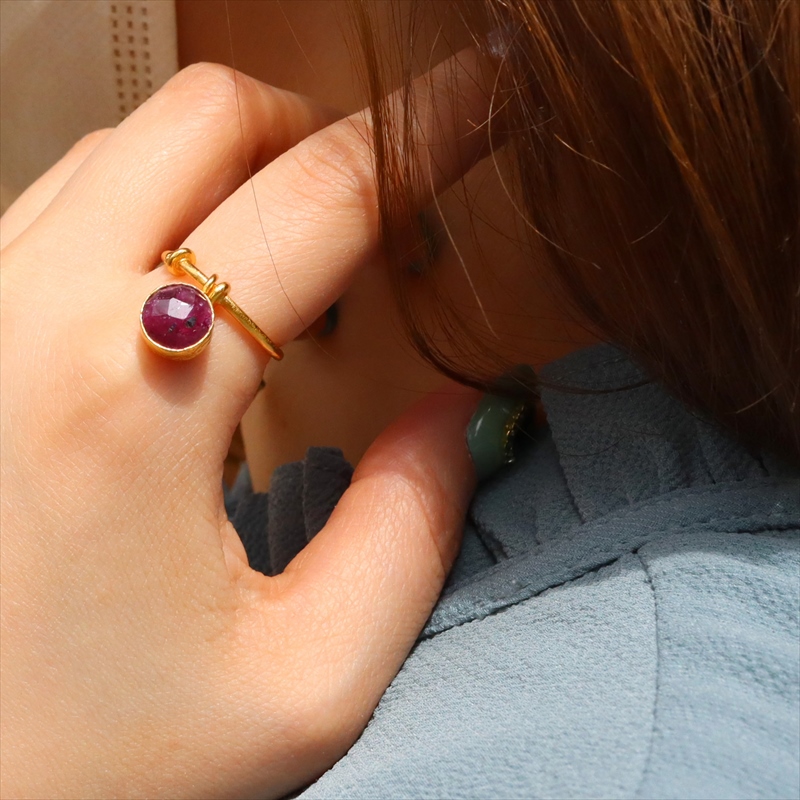 アルサメイア・ゴールドプレートリング ルビー ひと粒ゆれる ルビーリング 赤