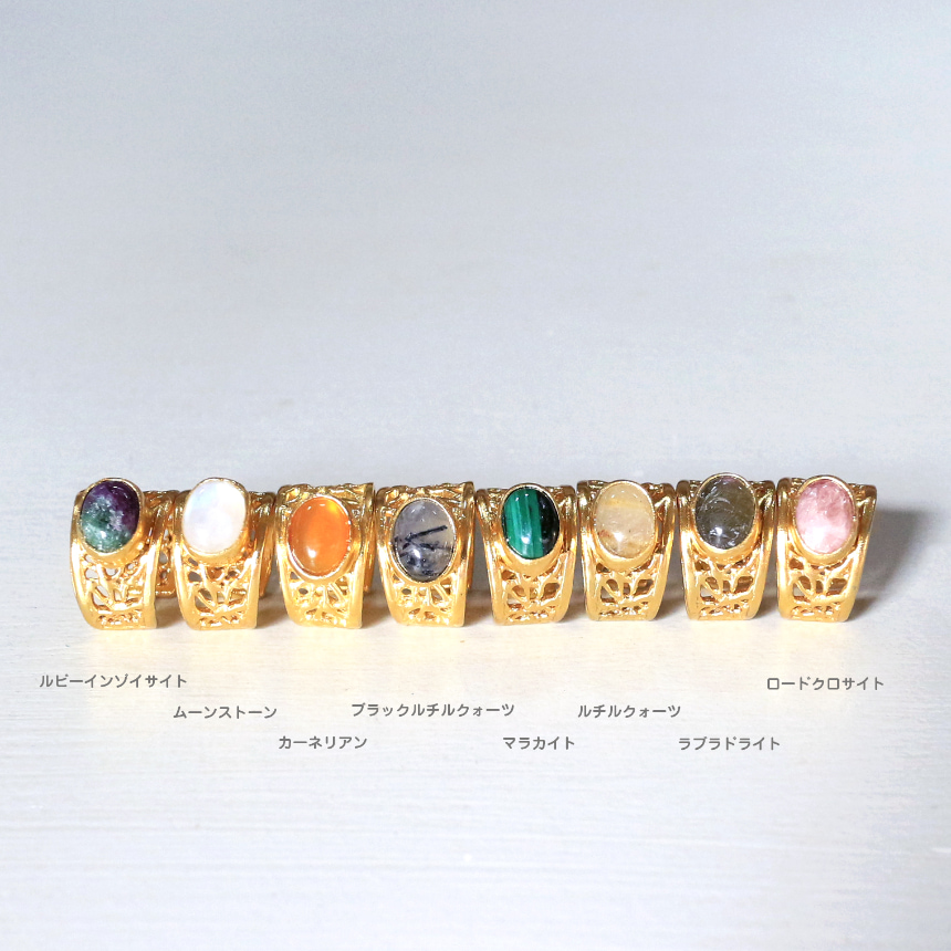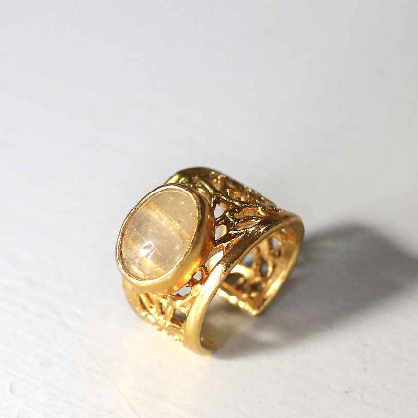 | 天然石(ルチルクォーツ)、真鍮(22kゴールドプレートテッド) |