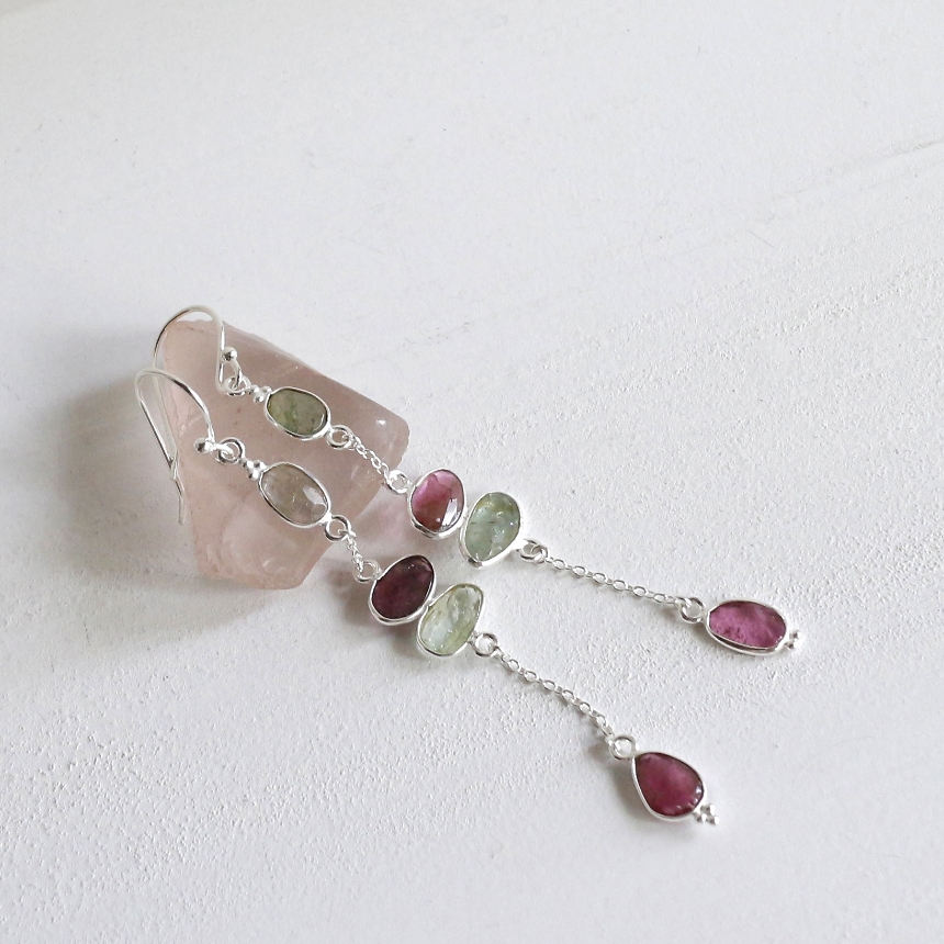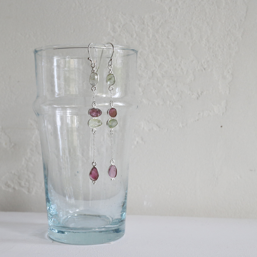 トルマリン シルバーピアス 揺れるロングチェーンピアス くすみカラー Jaipur ジャイプールジュエリー silver925