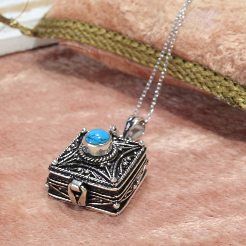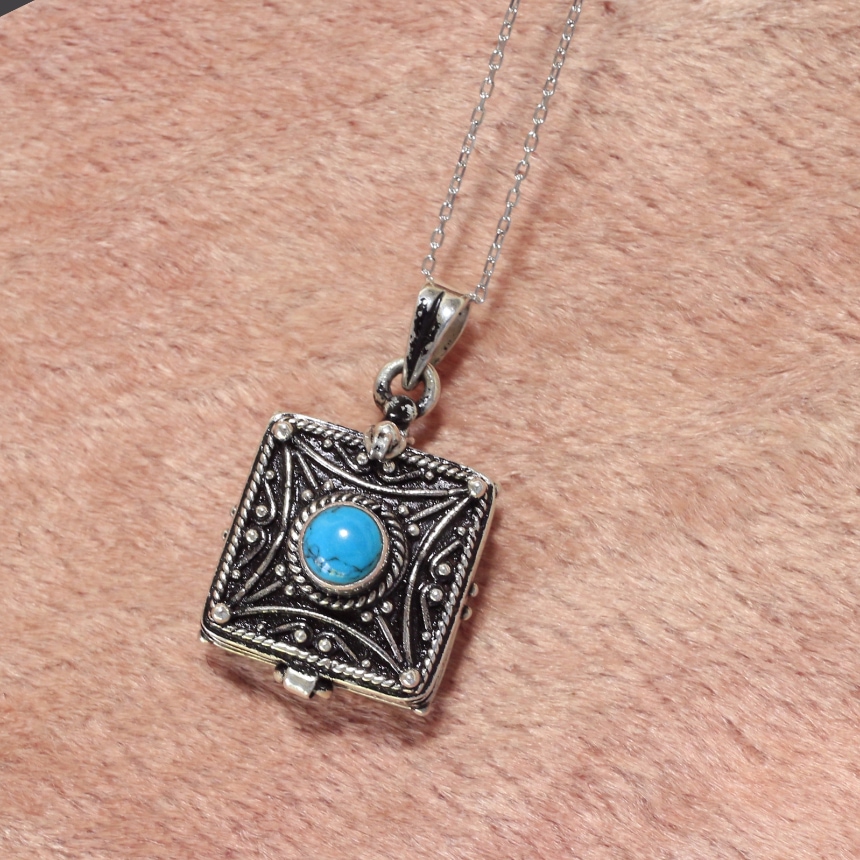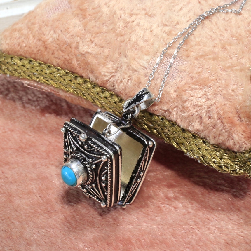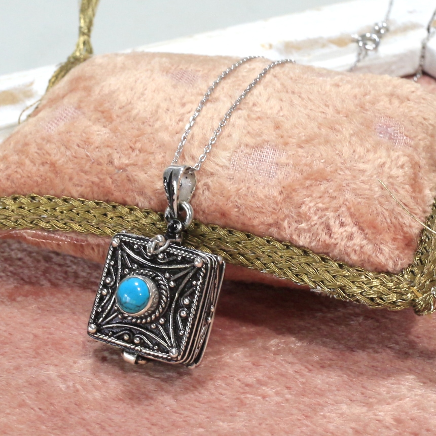 シルバーロケットペンダントトップ ターコイズ スクエア Turkish Silver Jewelry ※チェーン別売り