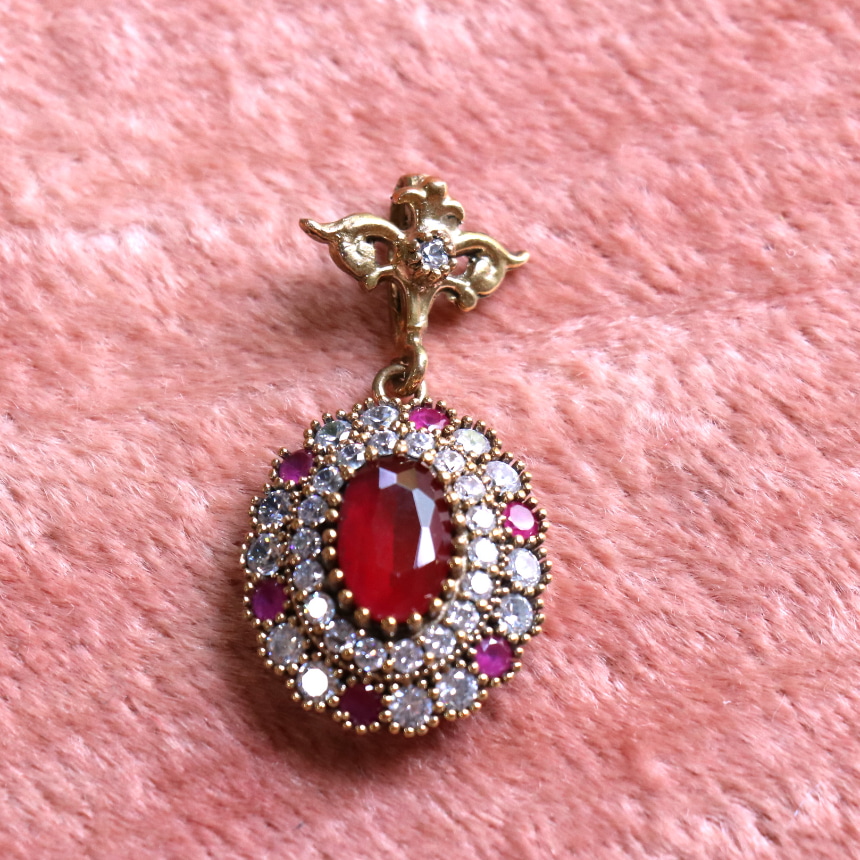 シルバーペンダントトップ【チェーン別売り】 オスマントルコ・アンティークデザイン/ルビーレッドオーバルペンダント Ottoman design Sterling silver pendant