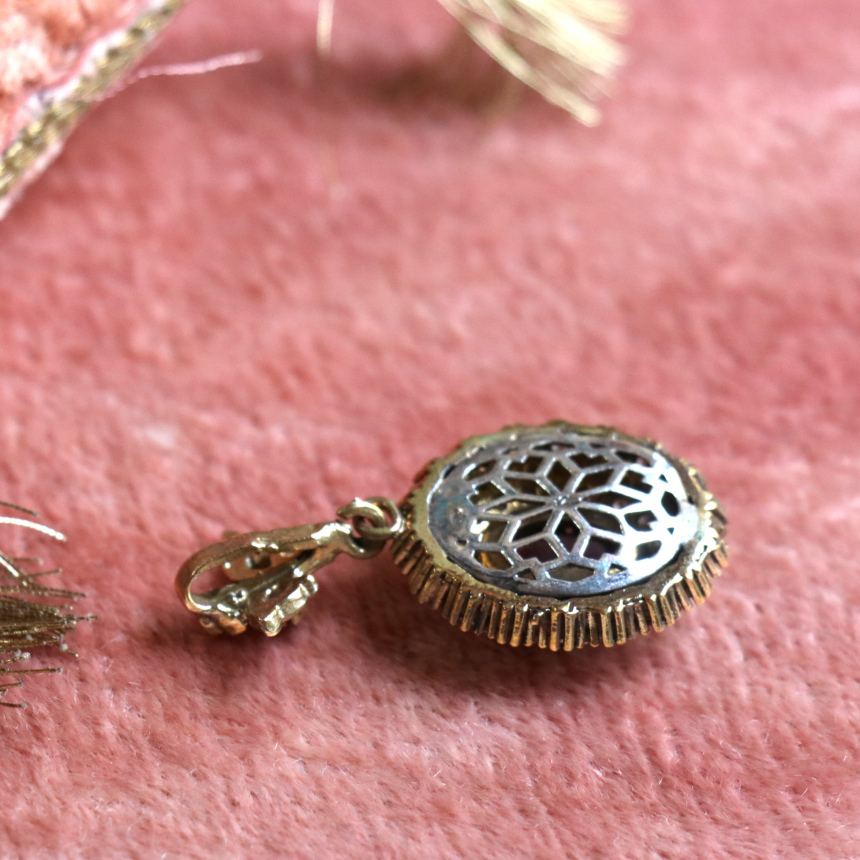 シルバーの台座がしっかりしていてモチーフの中央が高く盛り上がっていて、9mmほどの厚みがあります。
