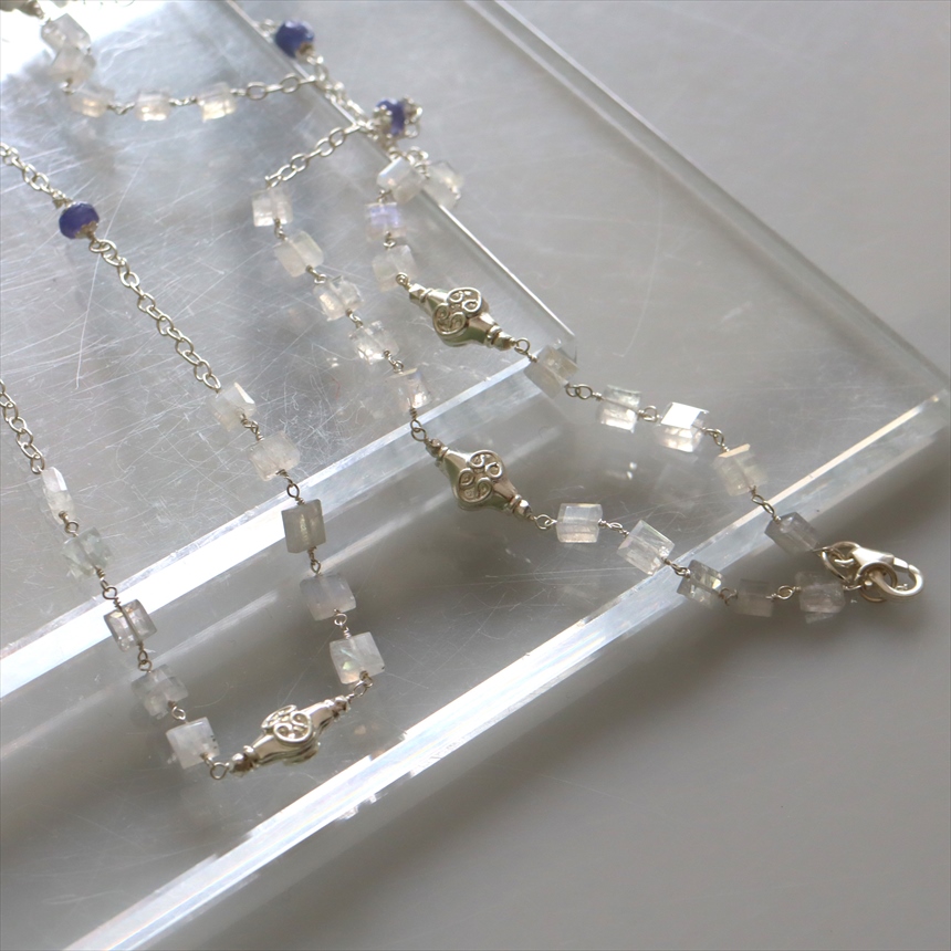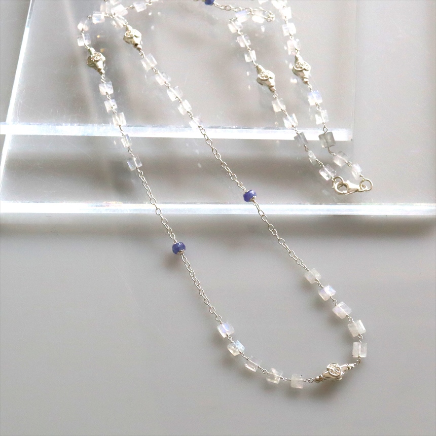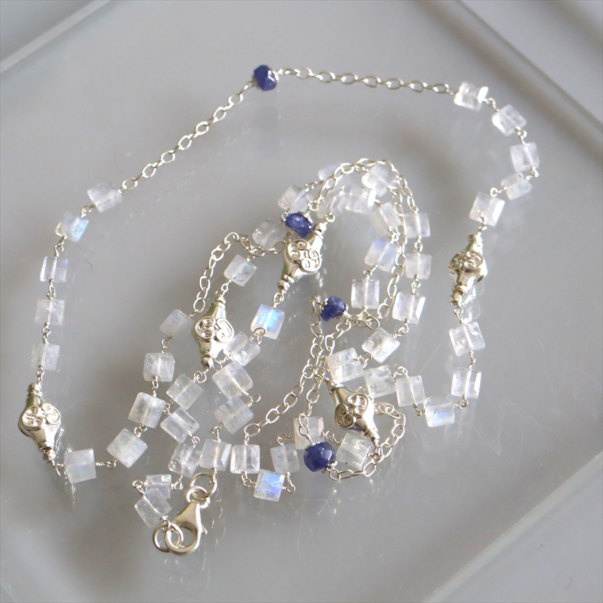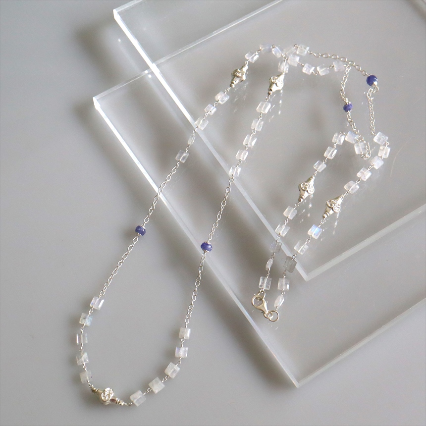 レインボームーンストーン シルバーロングネックレス スクエアカット タンザナイト Jaipur ジャイプールジュエリー silver925