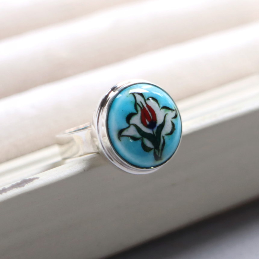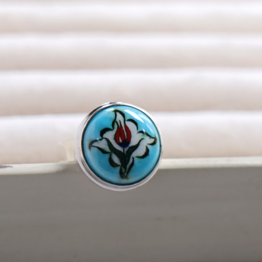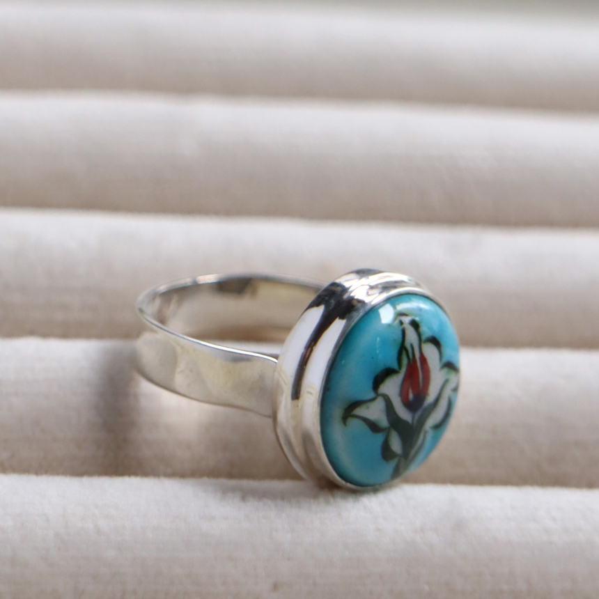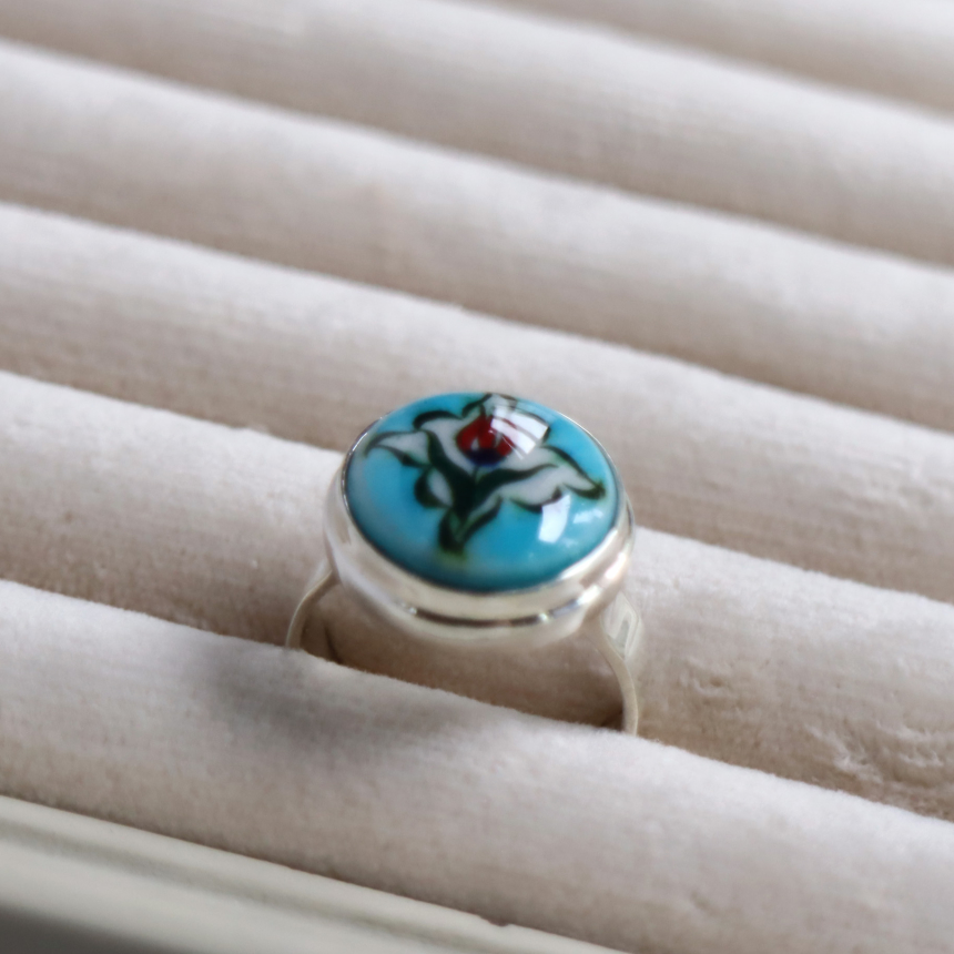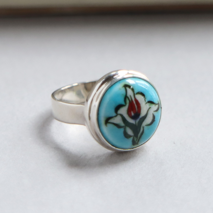 トルコ キュタフヤは陶芸の街!トルコの職人が、ひとつひとつ手描きで絵付けした小さな陶器をモチーフにしたシルバーリングです。