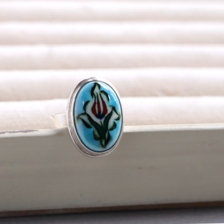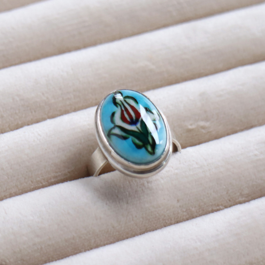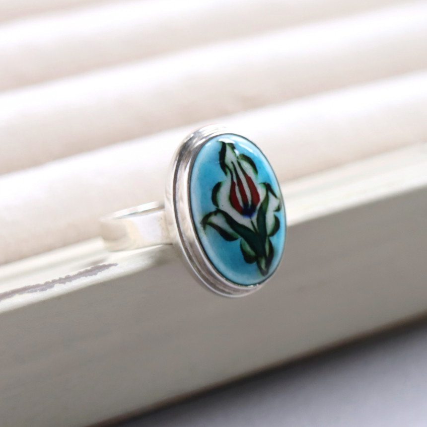 トルコ キュタフヤは陶芸の街!トルコの職人が、ひとつひとつ手描きで絵付けした小さな陶器をモチーフにしたシルバーリングです。