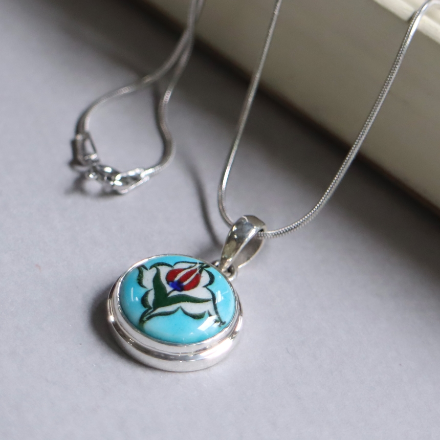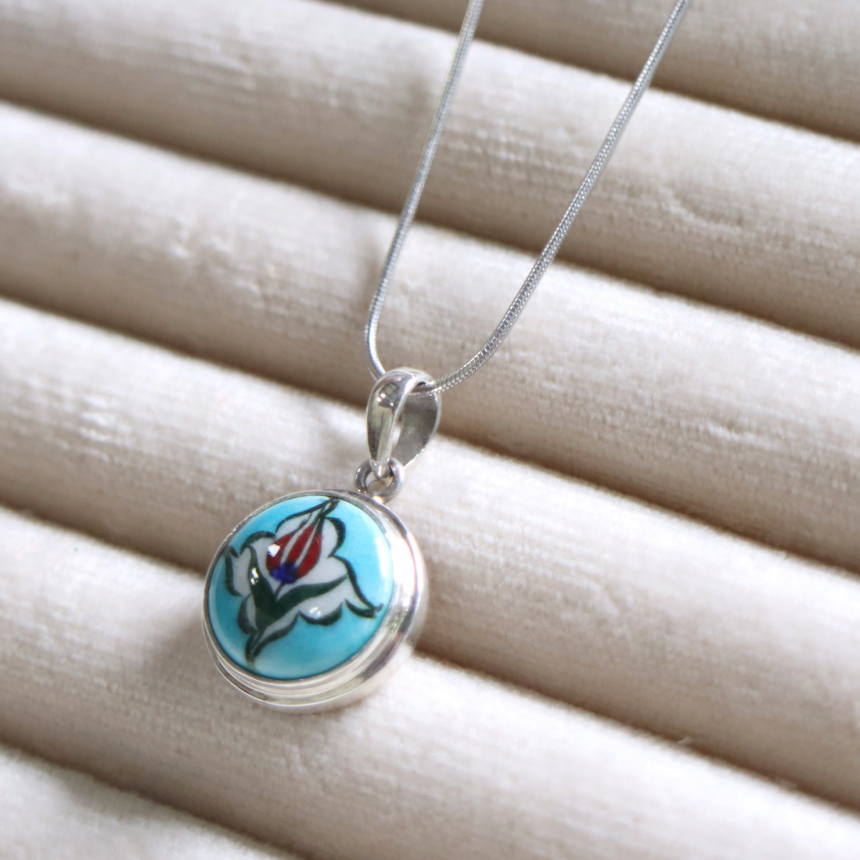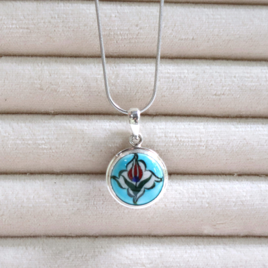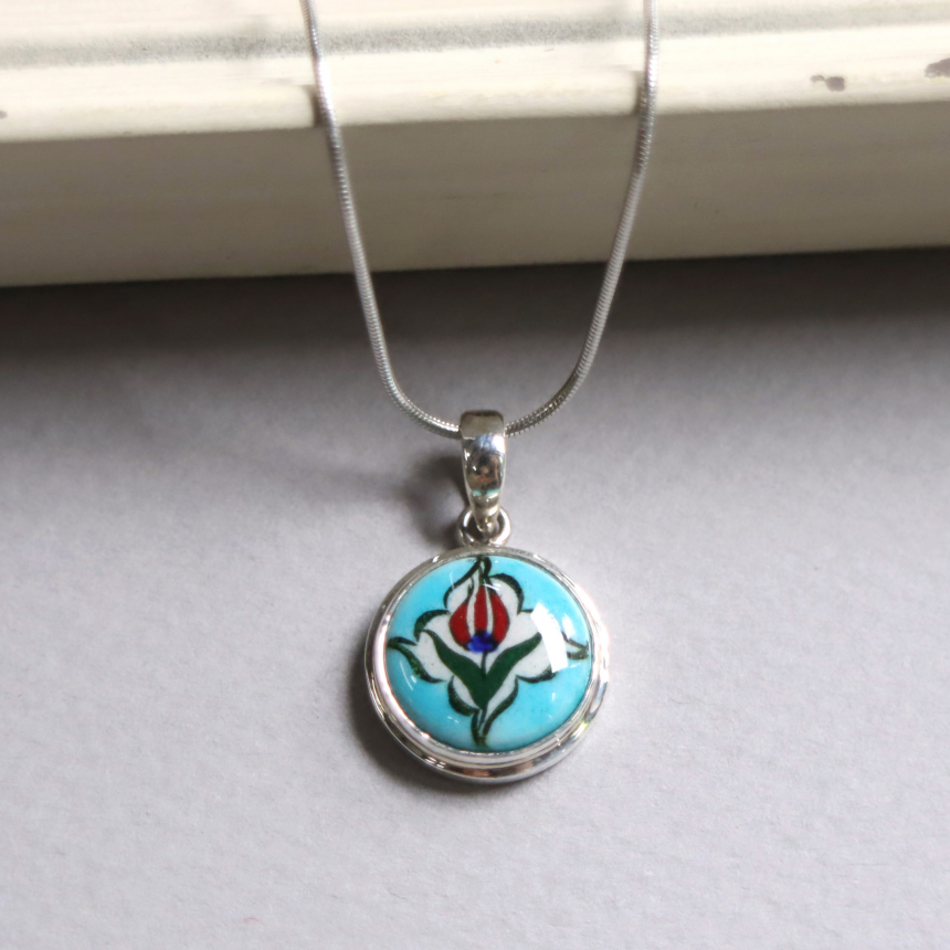 キュタフヤ陶器 シルバーペンダント 赤いチューリップ