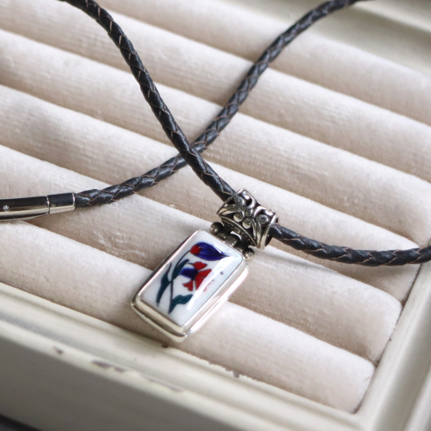 キュタフヤ陶器 シルバーペンダント チューリップとカーネーション