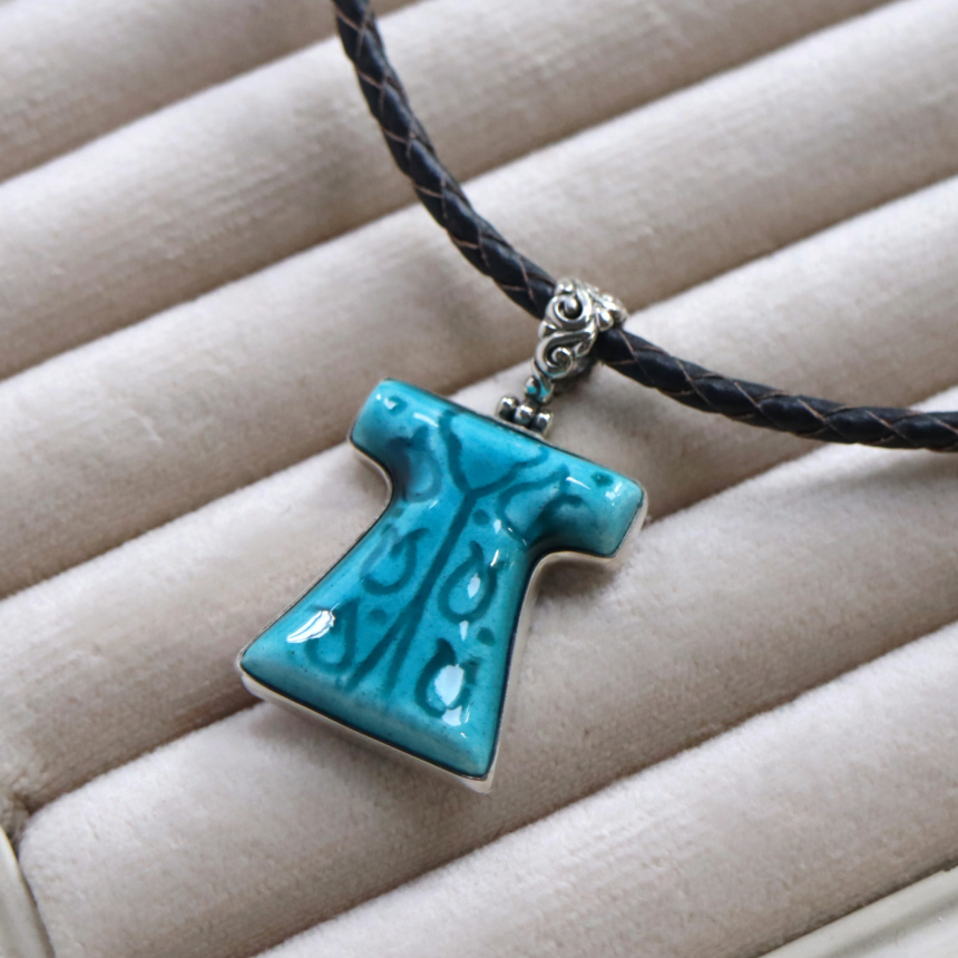 トルコキュターヤは陶芸の街!トルコの職人が、一つひとつ手描きで絵付けしたキュターヤ陶器とシルバー細工のペンダントです。シルバー細工も凝っていて、本体とバチカン部分は蝶番になっていて稼働します。オスマントルコ時代に宮廷で着用されたカフタン(長衣)が出人されています。