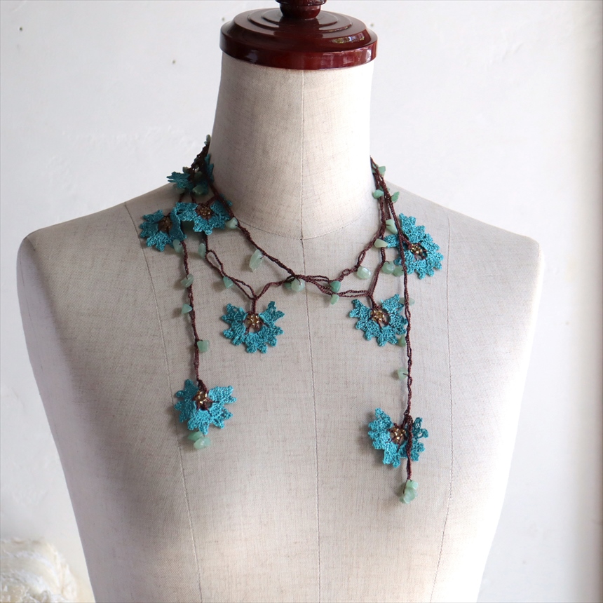 オヤ ラリエット トルコ伝統のレース編み小花モチーフ ターコイズブルー