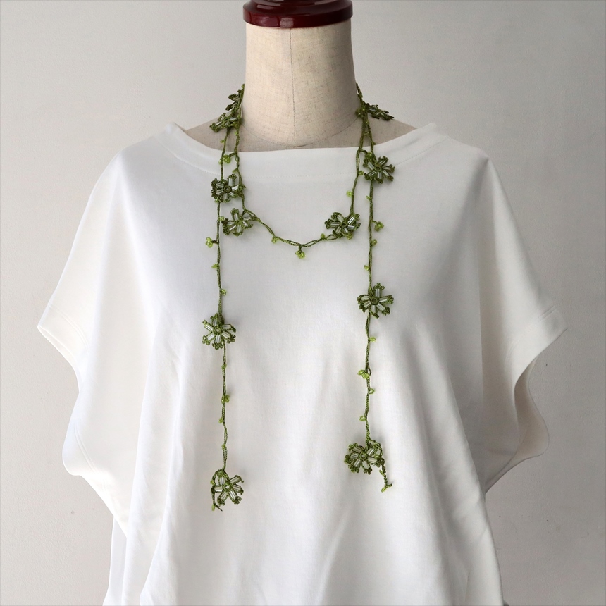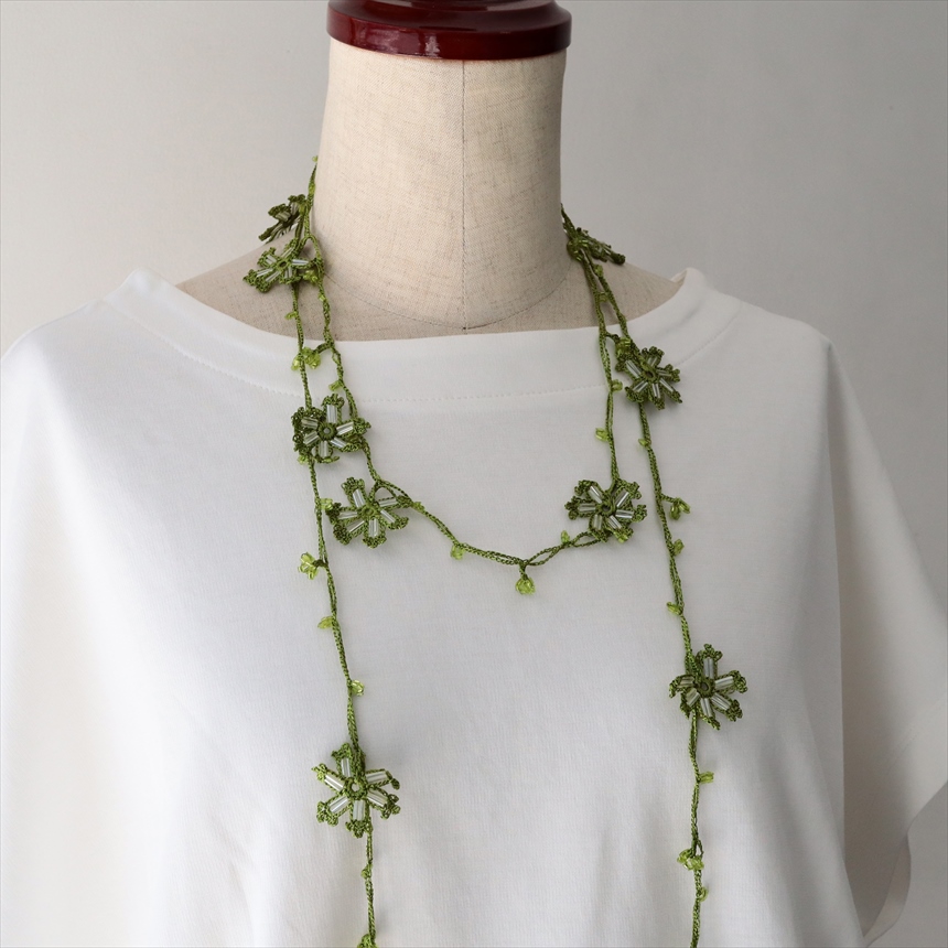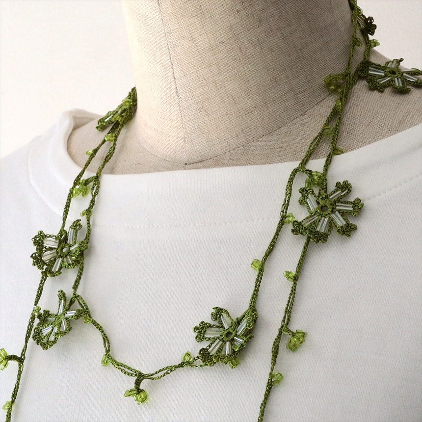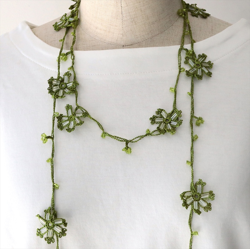 トルコのレース編み「オヤ」ラリエット ボンジュックオヤ オリーブグリーン